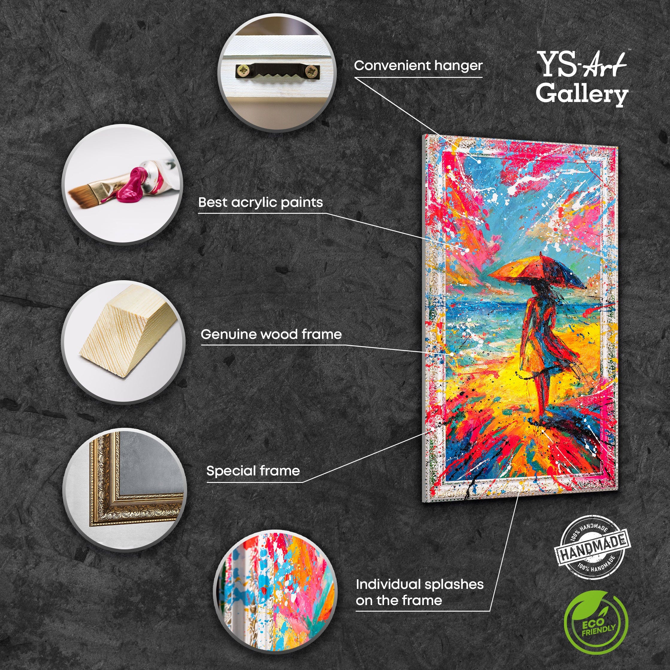 „Sonne entgegen“ ist ein handgemaltes Acrylgemälde voller Intensität, Bewegung und Hoffnung. Die Szene zeigt eine Frau mit Schirm am Meer, umgeben von leuchtenden Farben, die wie Sonnenstrahlen und Wellen ineinanderfließen. Die kraftvolle Farbexplosion in Rot, Gelb, Blau und Pink bringt Wärme, Dynamik und Lebensfreude direkt in Ihre Räume.