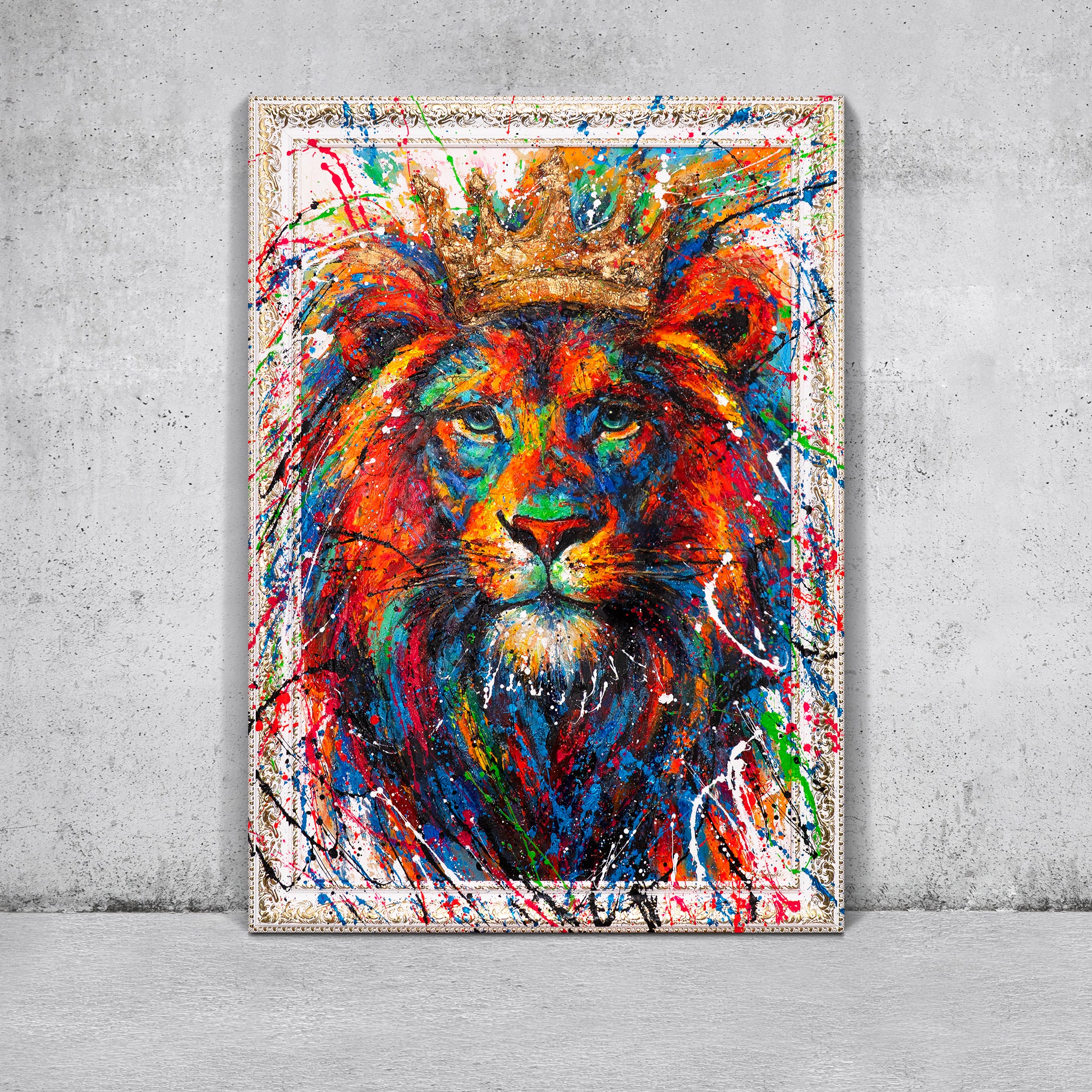 Abstraktes Gemälde auf Leinwand – Handgemalte Kunst mit Rahmen „König der Farben“