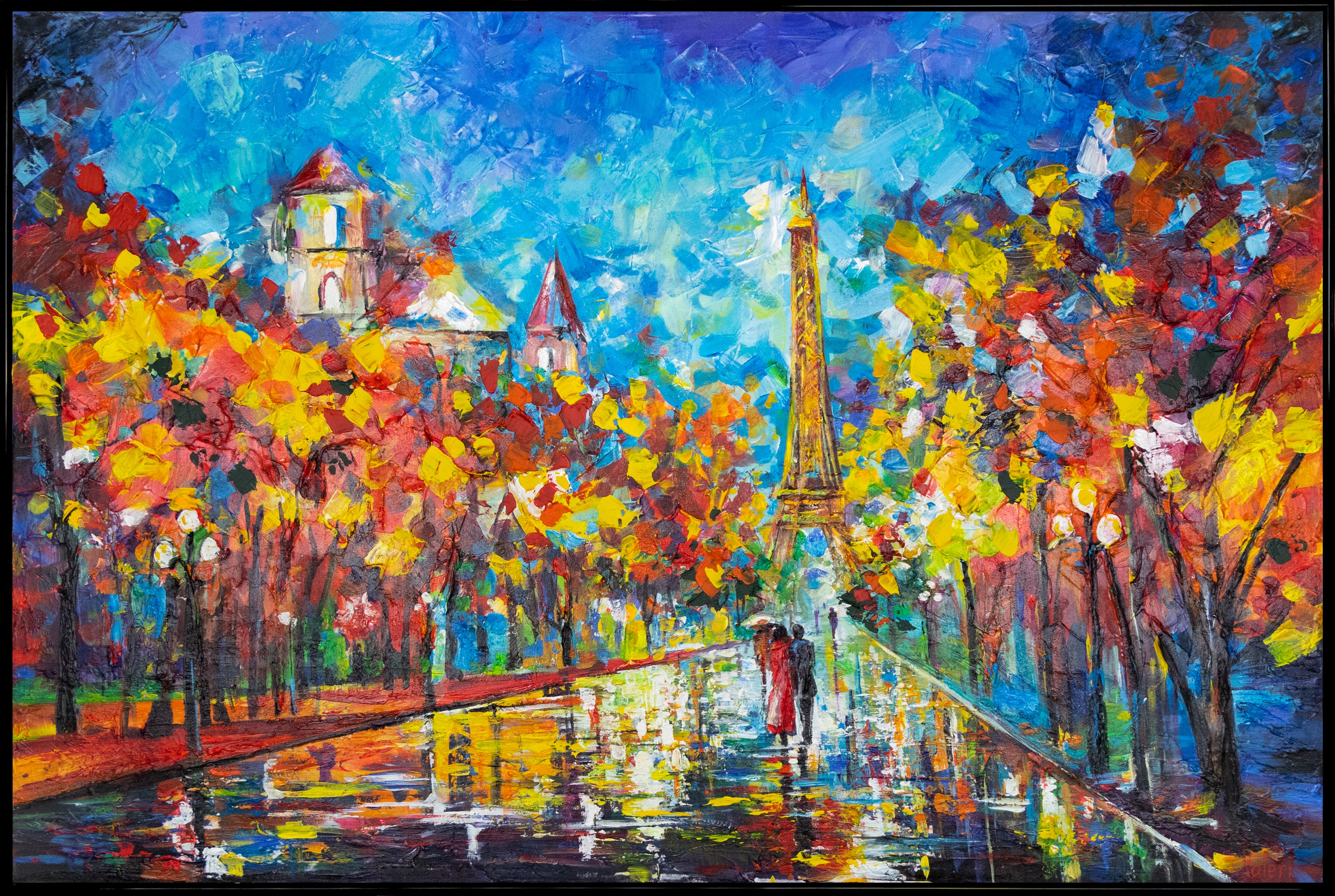 Käsinmaalatut akryylimaalaukset kankaalle ""Ilta Pariisissa"", maalaukset yksinkertaisesti