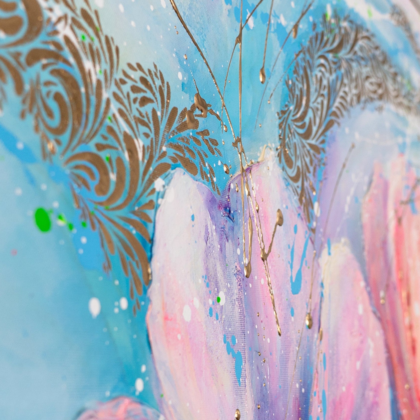 • Pastellfarben Blau Rosa abstrakte Blumenmalerei Detail