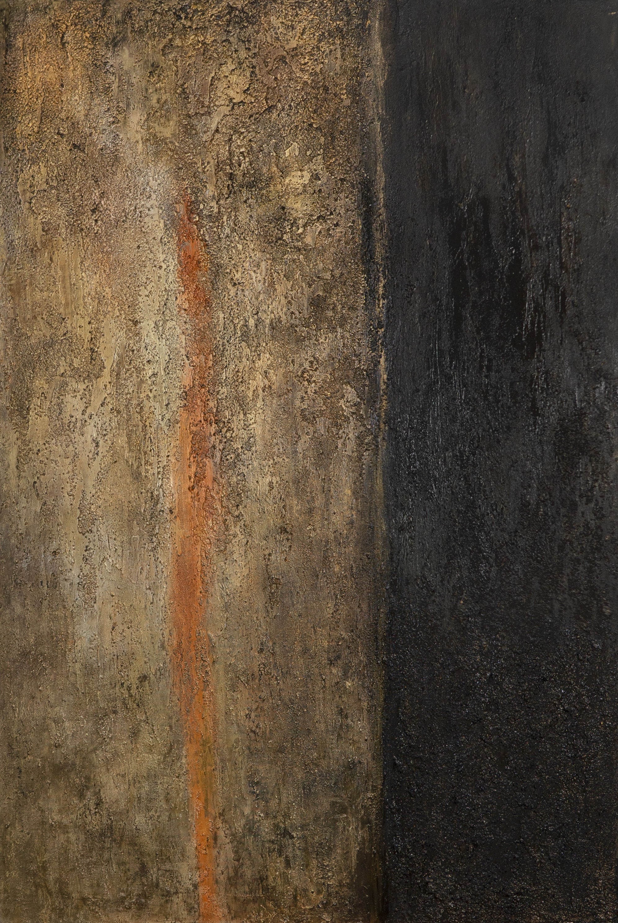 „Ajan syvyys“ on voimakas, käsinmaalattu akryylimaalaus, joka hurmaa kontrastikkaalla värimaailmallaan ja intensiivisellä rakenteellaan. Syvä musta, lämpimät ruskean sävyt, jalokultainen kiilto ja hienovarainen punainen aksentti luovat mystisen ja samalla elegantin vaikutelman. Reliefimäinen pinta tuo teokseen syvyyttä ja voimaa.