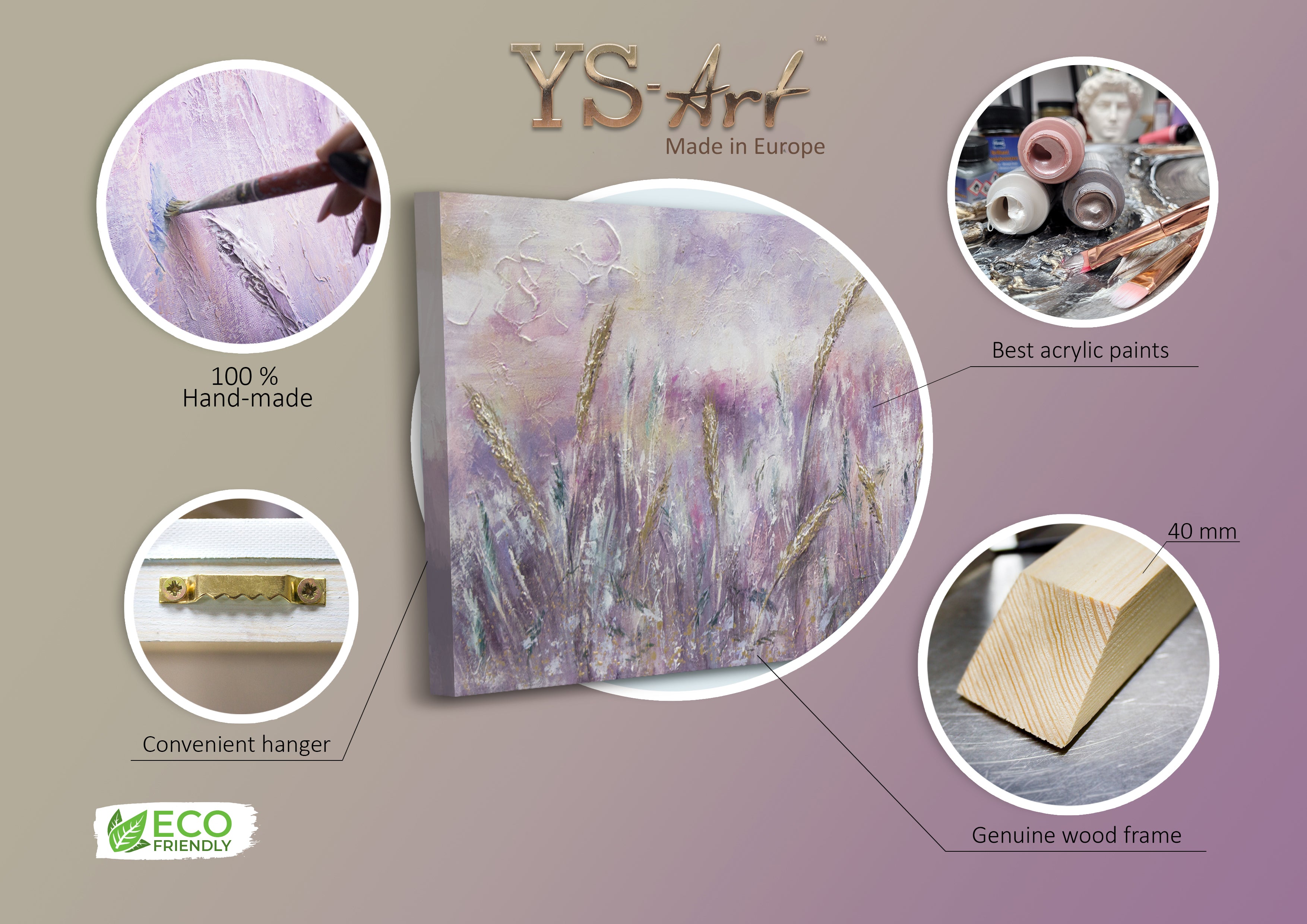 Maalaus, joka on maalattu miellyttävän Lämpimillä Väreillä, täyttää Kotisi tai Toimistosi Positiivisella Auringonenergialla. Motivoitu Varhaisen Kesäaamun tunnelma ympäröi Huoneen Raikkaudella ja Miellyttävällä Viileydellä. Säästä riippumatta, tällaisen Maalauksen kanssa Kotisi on aina Kotoisa. Tämä tekee teoksesta myös upean abstraktin akryylimaalauksen olohuoneeseen.