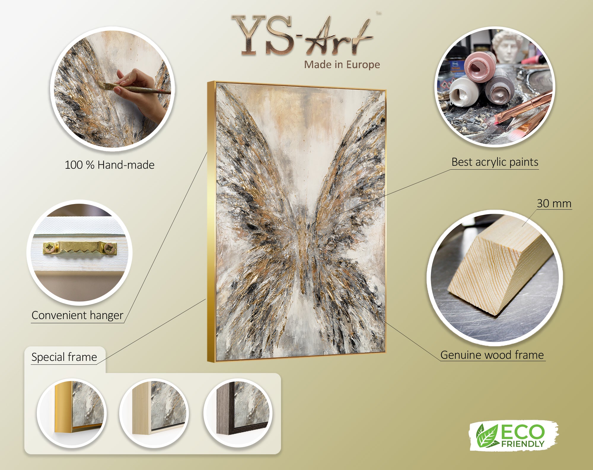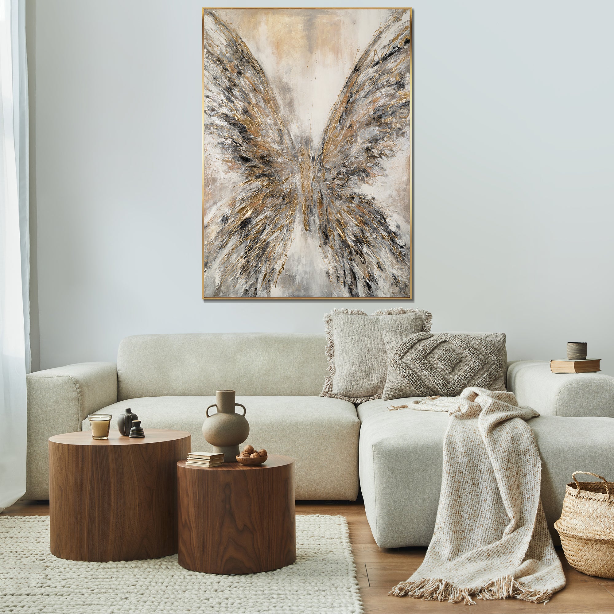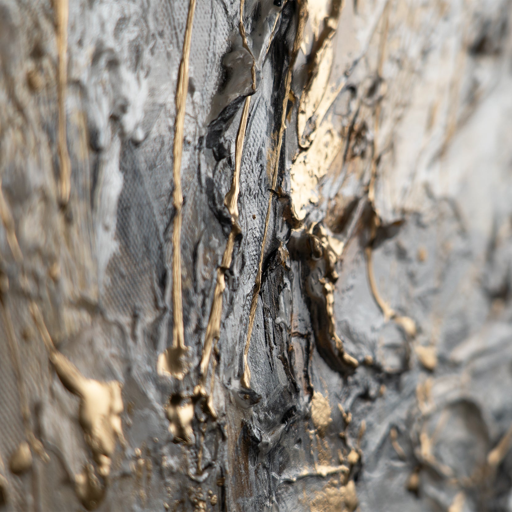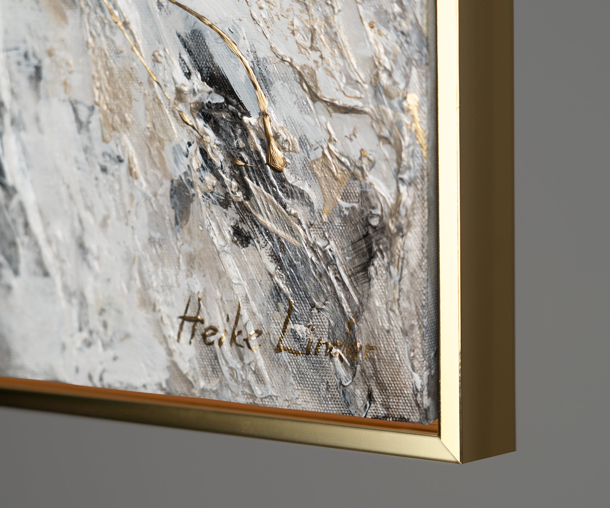 Anna tilallesi ainutlaatuista eleganssia tämän vaikuttavan käsinmaalatun taideteoksen avulla! Abstrakti esitys perhosen siivestä jaloin kultakorostuksin luo kiehtovan syvyysvaikutelman. Luksus-yhdistelmä mustaa, valkoista ja kultaa antaa maalaukselle hienostuneen loisteen, joka tekee vaikutuksen jokaisessa modernissa sisustuksessa.