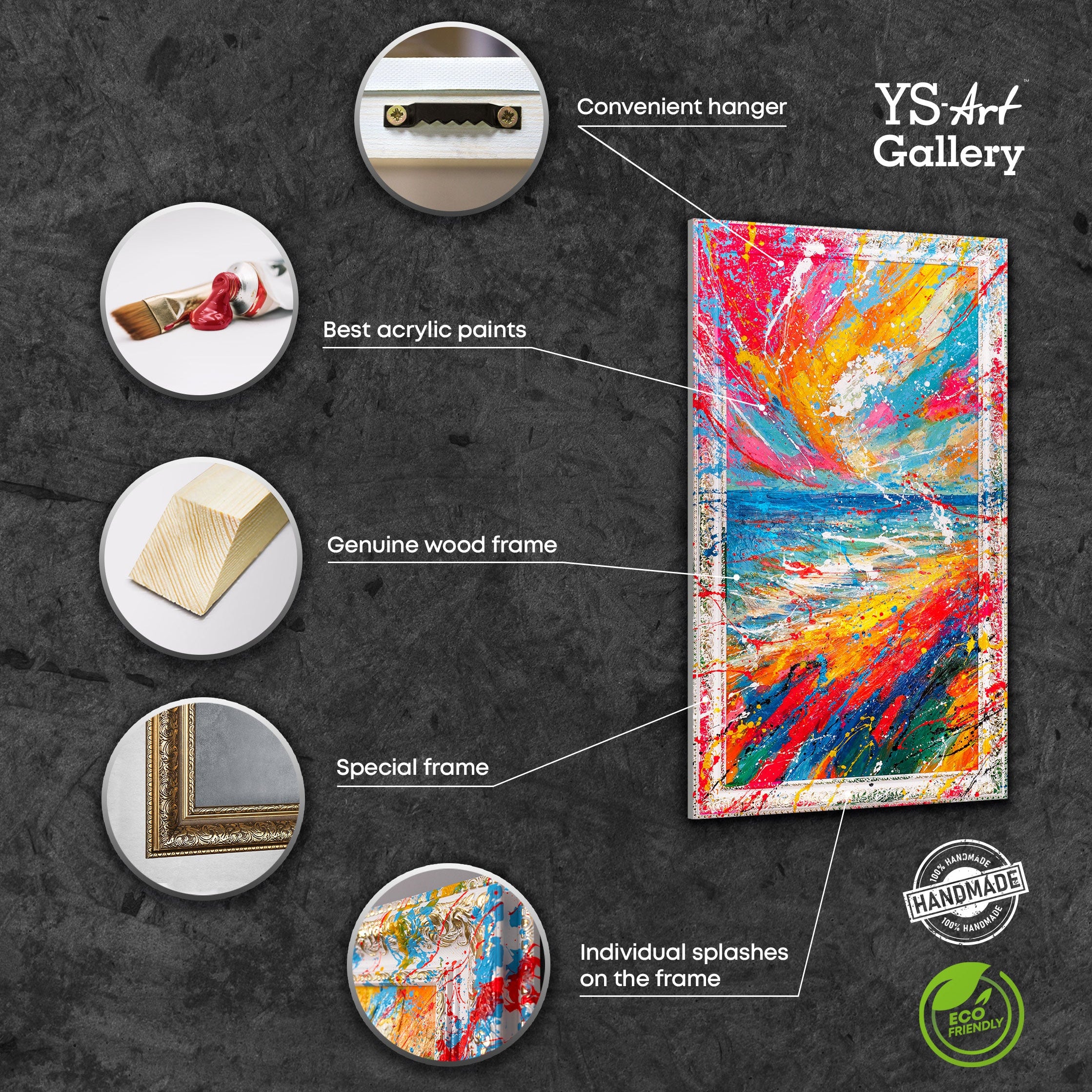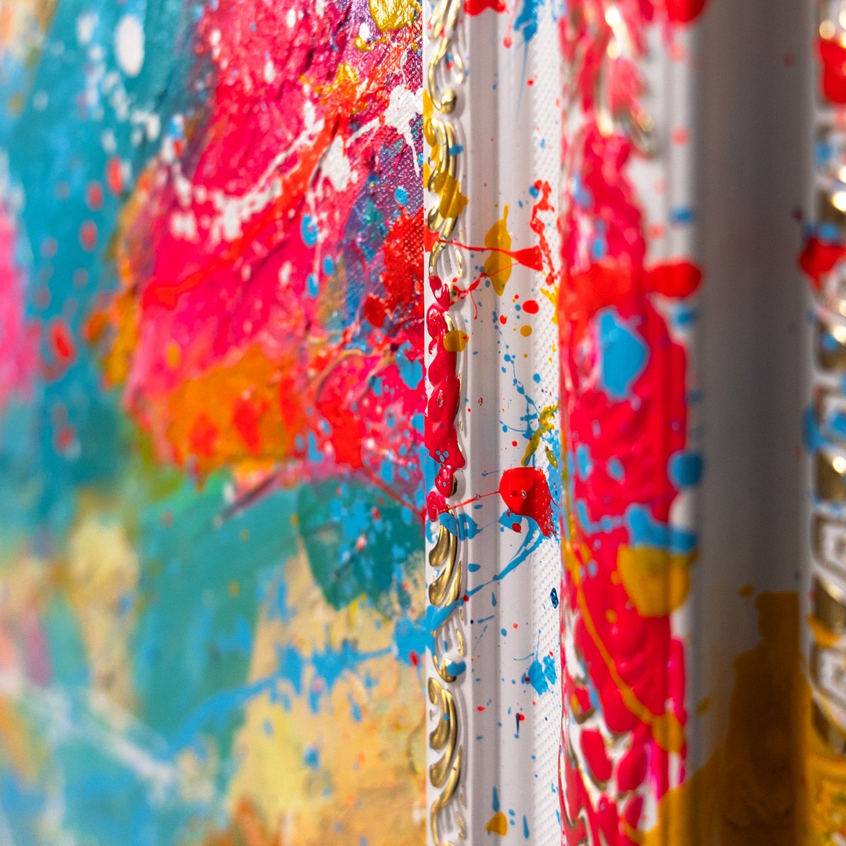 Perfekt für moderne Wanddeko Wohnzimmer, auffällige abstrakte Kunst oder große Leinwandbilder, die Ihre Räume mit positiver Energie und Farbintensität füllen. Dieses Werk kombiniert die Kraft der Farben mit exklusiver Handarbeit und hochwertiger Rahmung.