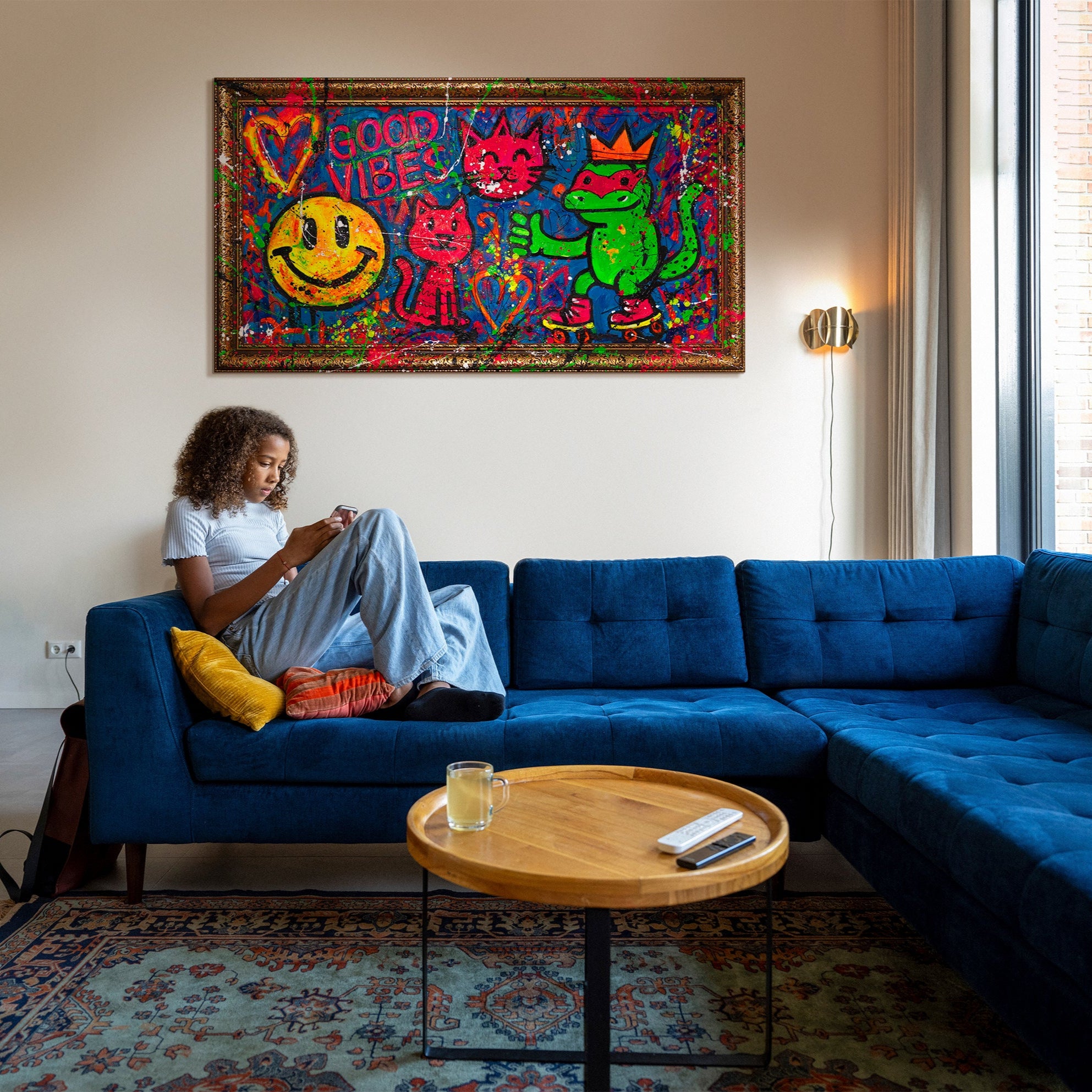 Perfekt für alle, die moderne wanddeko wohnzimmer, ausgefallene pop art bilder oder lebendige graffiti kunstwerke suchen. Jedes Detail ist handgemalt – ein echtes Unikat voller Dynamik und urbanem Lifestyle.