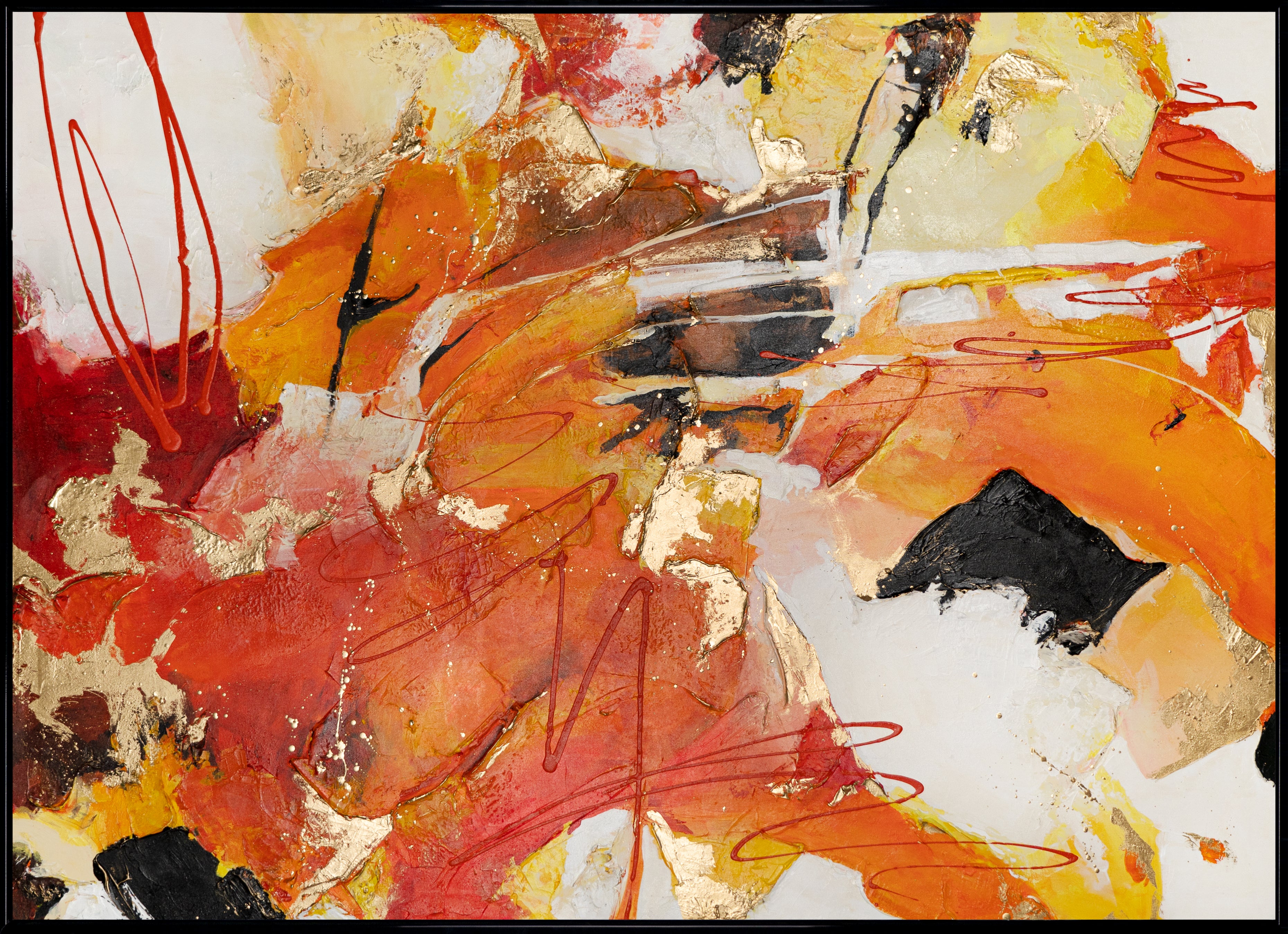 Sukella abstraktin Taiteen eloisaan maailmaan teoksen ""Oranssi Räjähdys"" kautta. Tämä vaikuttava Taideteos kankaalle kehyksellä tuo dynaamisen ja nykyaikaisen Sväyksen Olohuoneeseesi. Täydellinen modernin Taiteen ystäville ja ihanteellinen Seinänkoristeeksi.