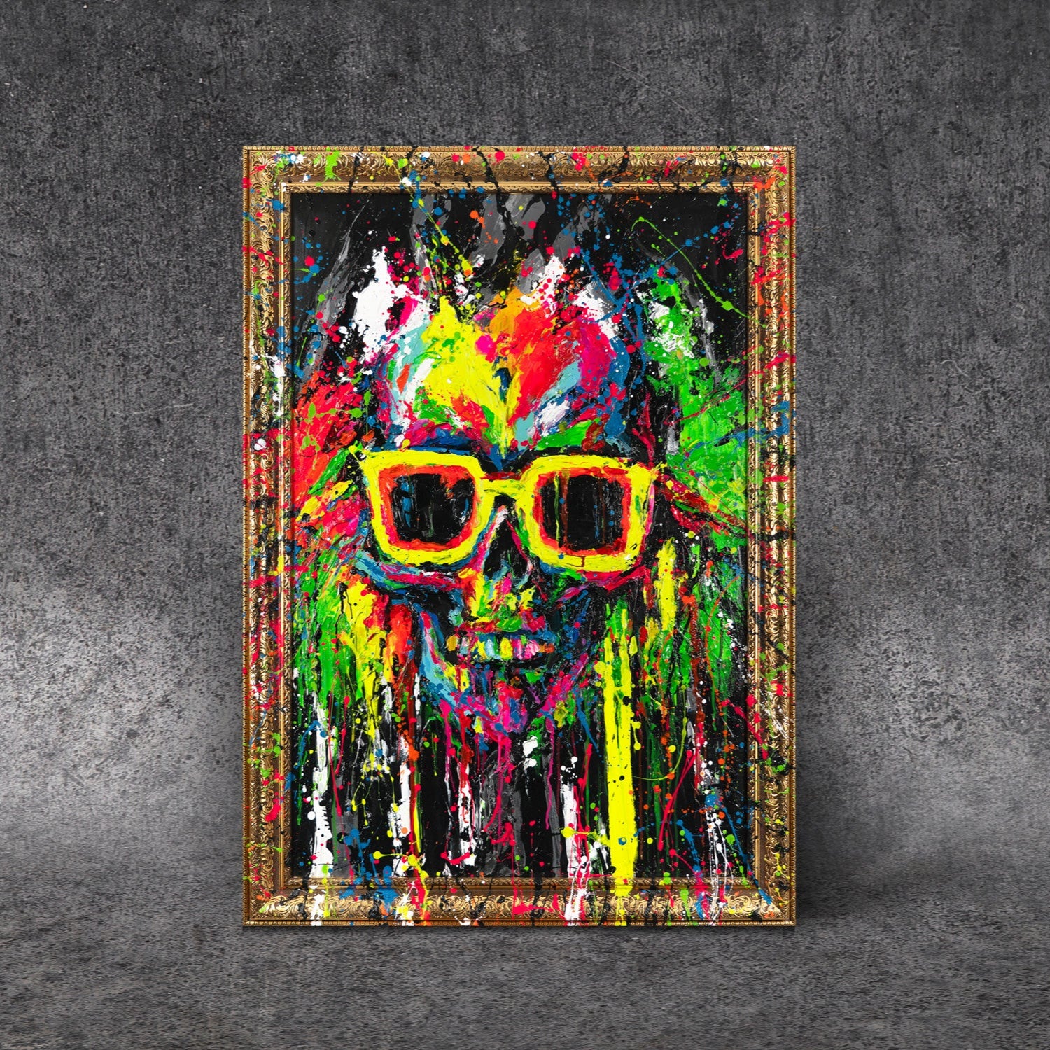 • Moderne Wandkunst Portrait Acrylbild Neonfarben Struktur