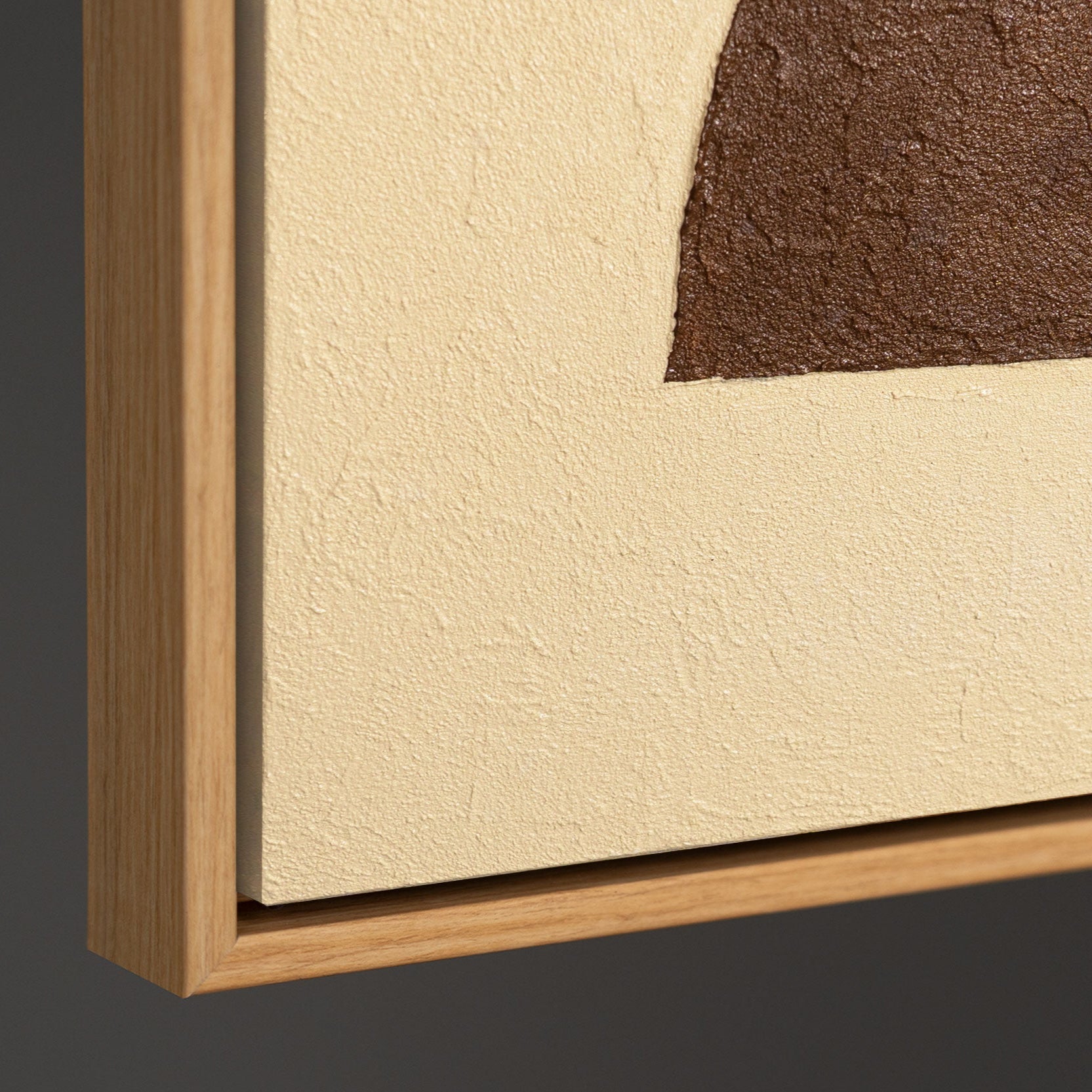 „Kolme horisonttia“ yhdistää selkeät muodot, lämpimät värit ja käsinmaalatun rakenteen ajattomaksi moderni taulu, joka huokuu eleganssia ja rauhaa.