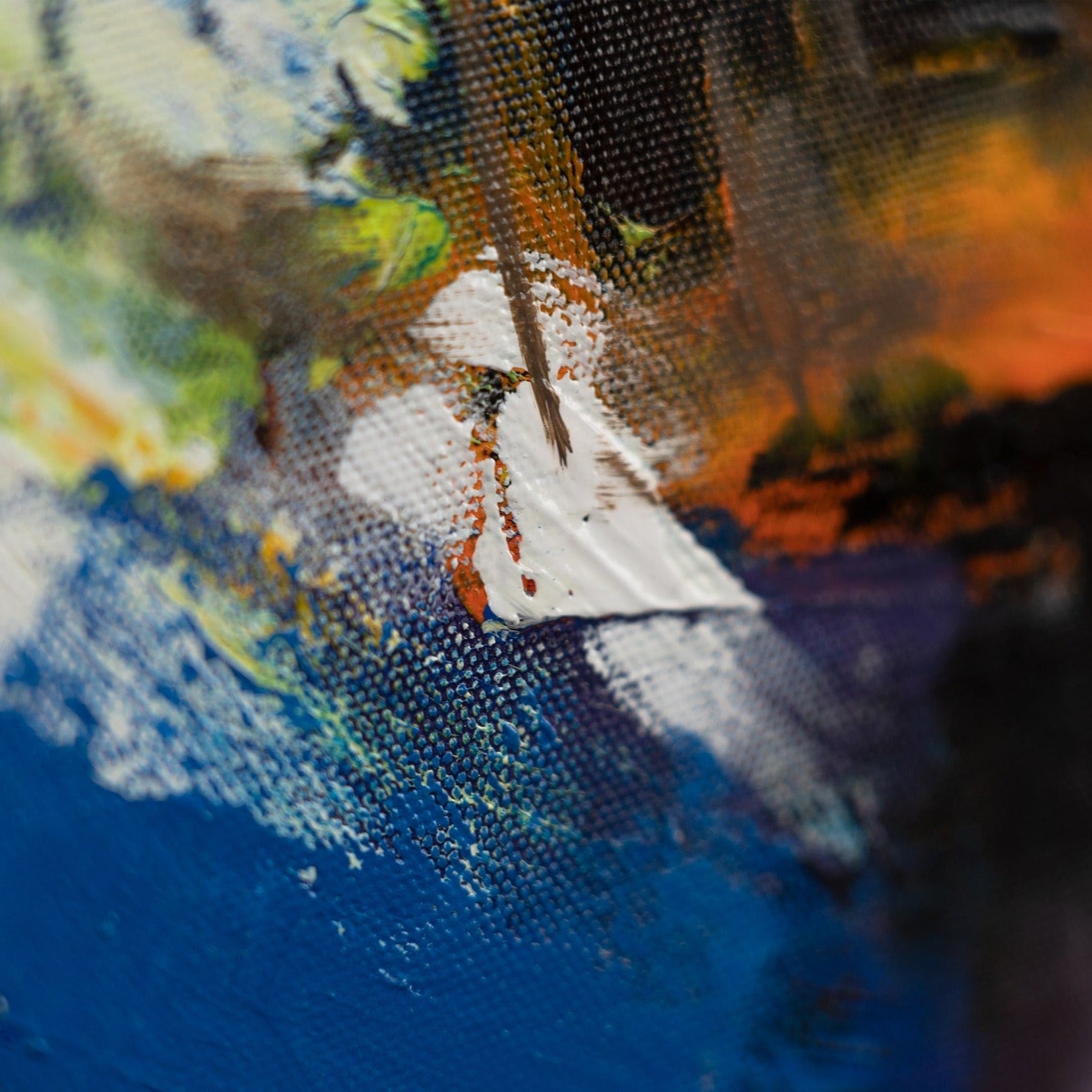 Käsinmaalattu akryylitaideteos kankaalle, joka yhdistää abstraktin ilmaisun ja intensiiviset värit. "Elävä Asu" esittää taiteellisesti tulkitun portraitin punaisen, sinisen, keltaisen ja oranssin sävyissä, jossa pastamainen väriantaminen ja strukturoidut pinnat luovat syvyyttä ja liikettä. Tämä uniikki teos toimii katseenvangitsijana olohuoneessa, studiossa tai luovassa työtilassa.