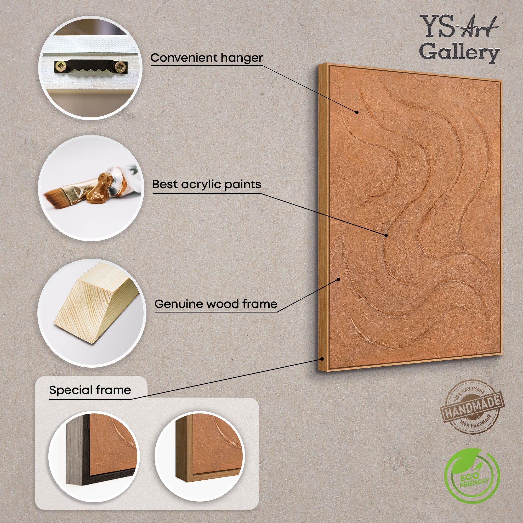 „Lämpimät rytmit“ on käsinmaalattu akryylimaalaus, joka hurmaa pehmeillä rytmisillä linjoillaan ja lämpimällä väripaletillaan. Maanläheiset luonnonsävyt ja rakenteellinen pinta välittävät rauhaa, voimaa ja pysyvyyttä. Teos luo harmonisen tunnelman ja elävän ilmeen, joka tuo mieleen orgaaniset muodot ja luonnollisen liikkeen.