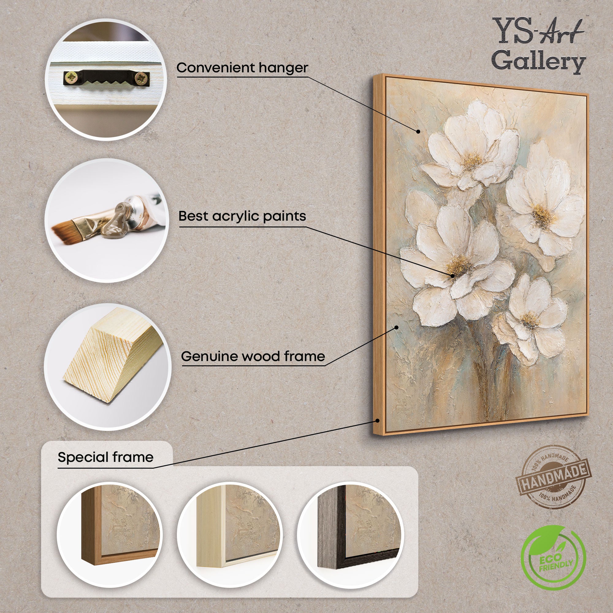 Tämä kukka taulu sopii täydellisesti olohuoneeseen, makuuhuoneeseen tai ruokailutilaan tuomaan eleganssia ja lämpöä. Uniikkina käsinmaalattuna teoksena se tuo alkuperäisyyttä ja taiteellista viehätystä sisustukseesi. Turvallisen toimituksen ja ilmaisen kuljetuksen ansiosta saat eksklusiivisen canvas taulu, joka rikastuttaa kotiasi ajattomalla kauneudella.