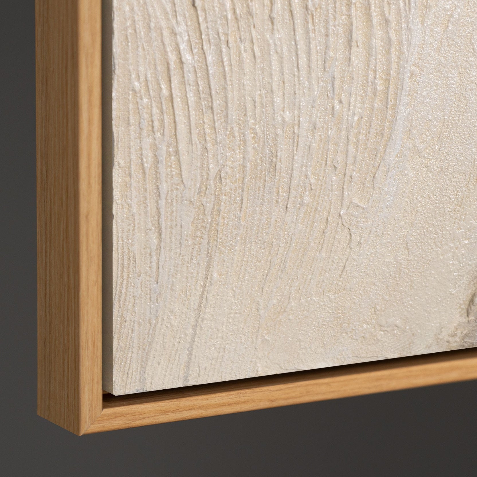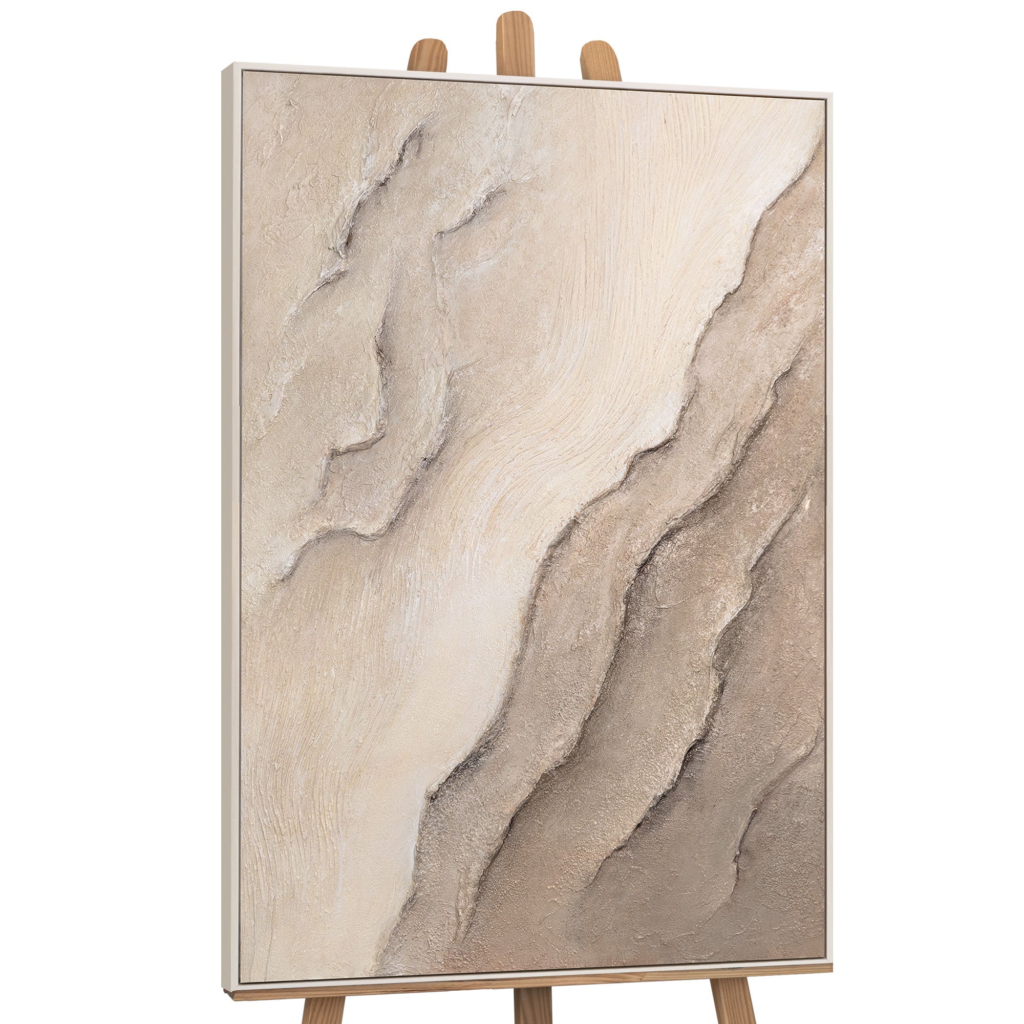 „Ajan jäljet“ on käsinmaalattu akryylimaalaus, joka hurmaa pehmeillä linjoillaan ja harmonisilla rakenteillaan. Beige-, hiekan- ja luonnonsävyinen väripaletti välittää rauhaa ja ajattomuutta, kun taas reliefimäinen pinta korostaa teoksen syvyyttä ja luonnollisuutta. Jokainen hienovarainen linja muistuttaa geologisista kerroksista ja luo orgaanisen, lähes meditatiivisen vaikutelman.