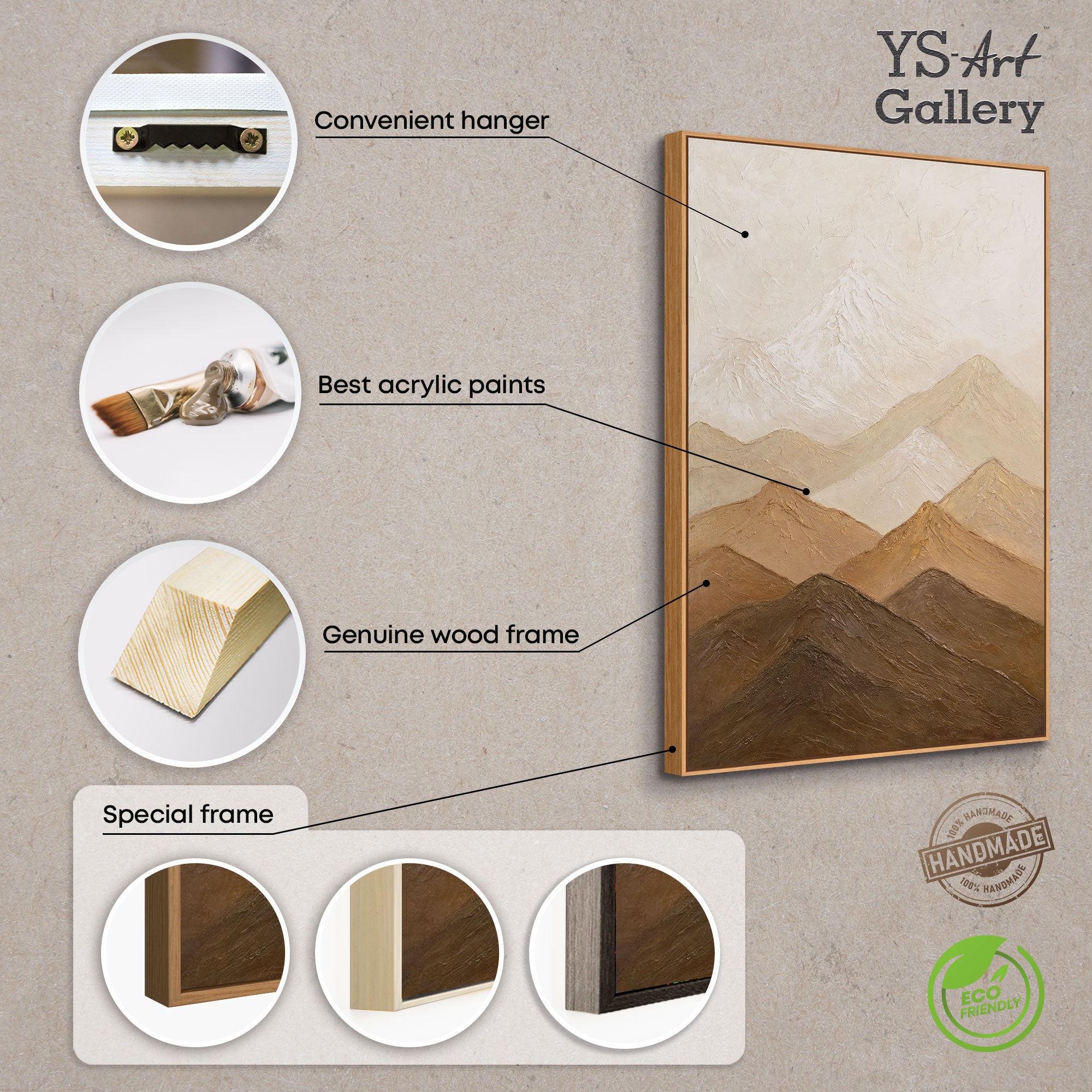 „Kerrostumien harmonia“ on käsinmaalattu akryylimaalaus, joka vangitsee maakerrosten kauneuden abstraktissa muodossa. Pehmeät beigen, hiekan ja ruskean sävyt luovat rauhan ja tasapainon tunnetta, kun taas rakenteellinen pinta antaa teokselle syvyyttä ja luonnollisuutta. Jokainen kerros on kuin hiljainen luonnon kaiku, joka tuo orgaanista harmoniaa tilaan.