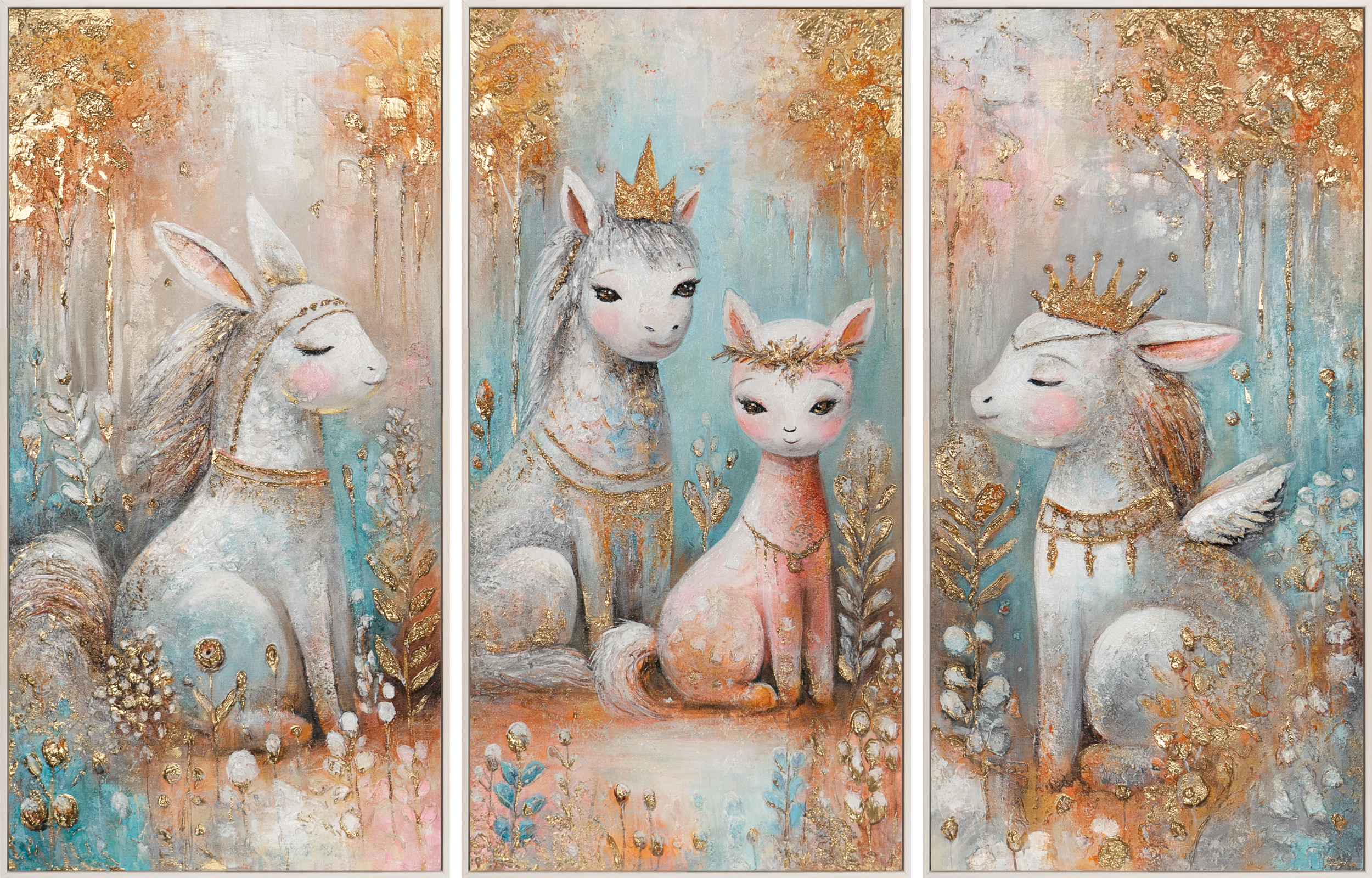 Anna lastenhuoneelle taianomainen tunnelma tällä lumoavalla taulut kotiin -seinäsomisteella. Tämä maalaus esittää suloisia metsän eläimiä unenomaisessa ympäristössä, luotu lämpimillä väreillä ja rakkaudella yksityiskohtiin. Ihanteellinen lastenhuoneen sisustukseen rauhoittavan ja inspiroivan ilmapiirin luomiseksi.