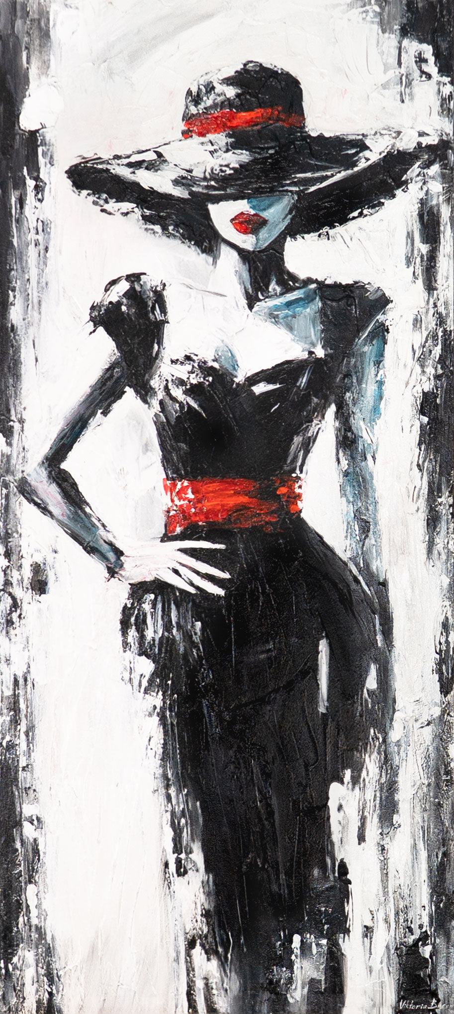 „Mysteeri vieras“ on käsinmaalattu akryylimaalaus kankaalle, joka esittää ilmaisullisin siveltimenvedoin abstrakti maalaus elegantin vieraan siluettia mustassa, valkoisessa ja punaisessa. Kolmiulotteinen rakenne ja vahva värikontrasti luovat salaperäisen, modernin ilmapiirin.