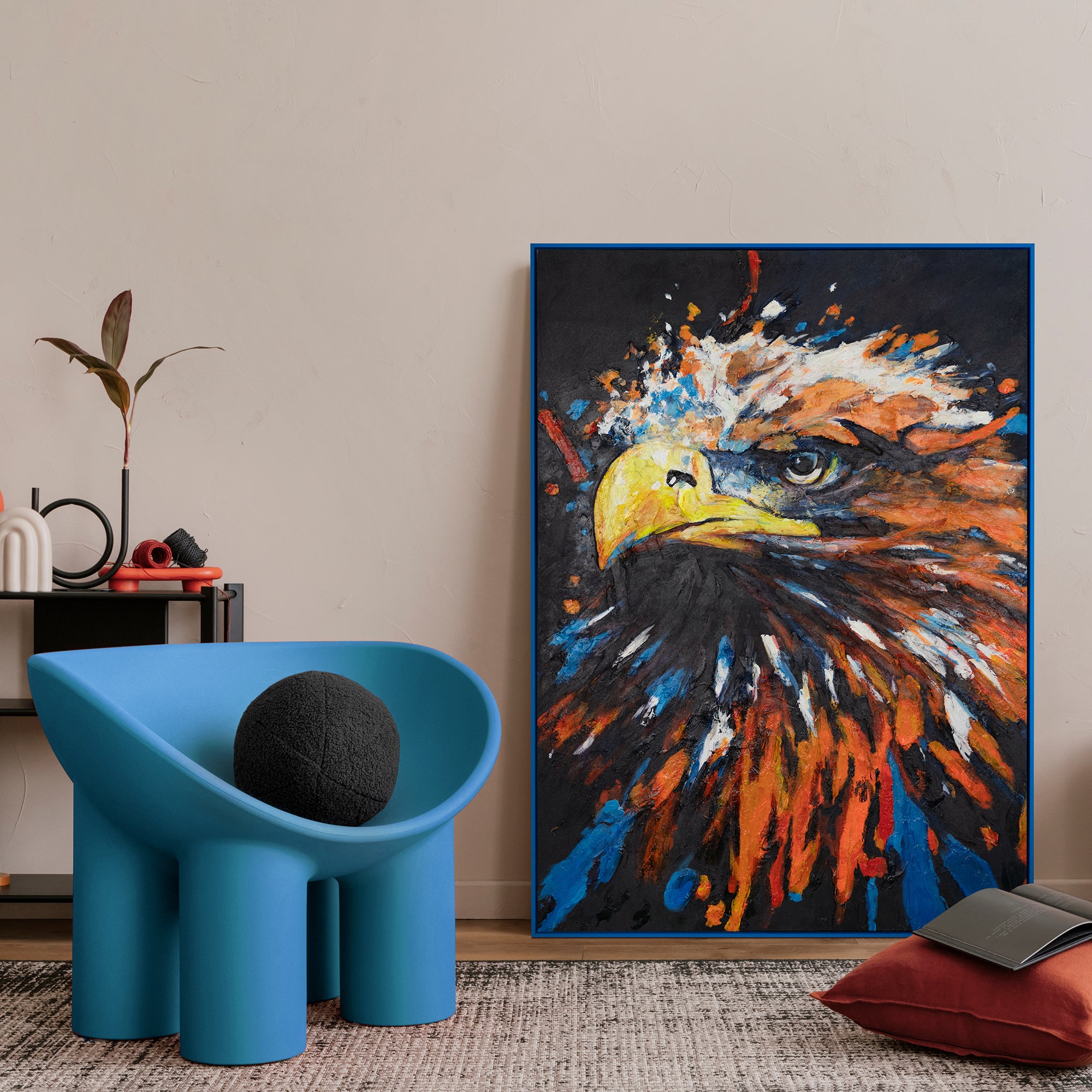 Jokainen Seinämäalaus esitetään huolellisesti tyylikkäässä Kehyksessä, joka ei ainoastaan suojaa Taideteosta, vaan myös vahvistaa sen Läsnäolon. Abstrakti tulkinta Kotkasta tekee tästä teoksesta vaikuttavan Katseenvangitsijan, joka herättää takuulla Huomiota. Säilyttääksesi Akryylimaalauksen kestävyyden, suosittelemme pitämään sen poissa suorasta Auringonvalosta ja pölyttämään sen pehmeällä, kuivalla Liinalla.