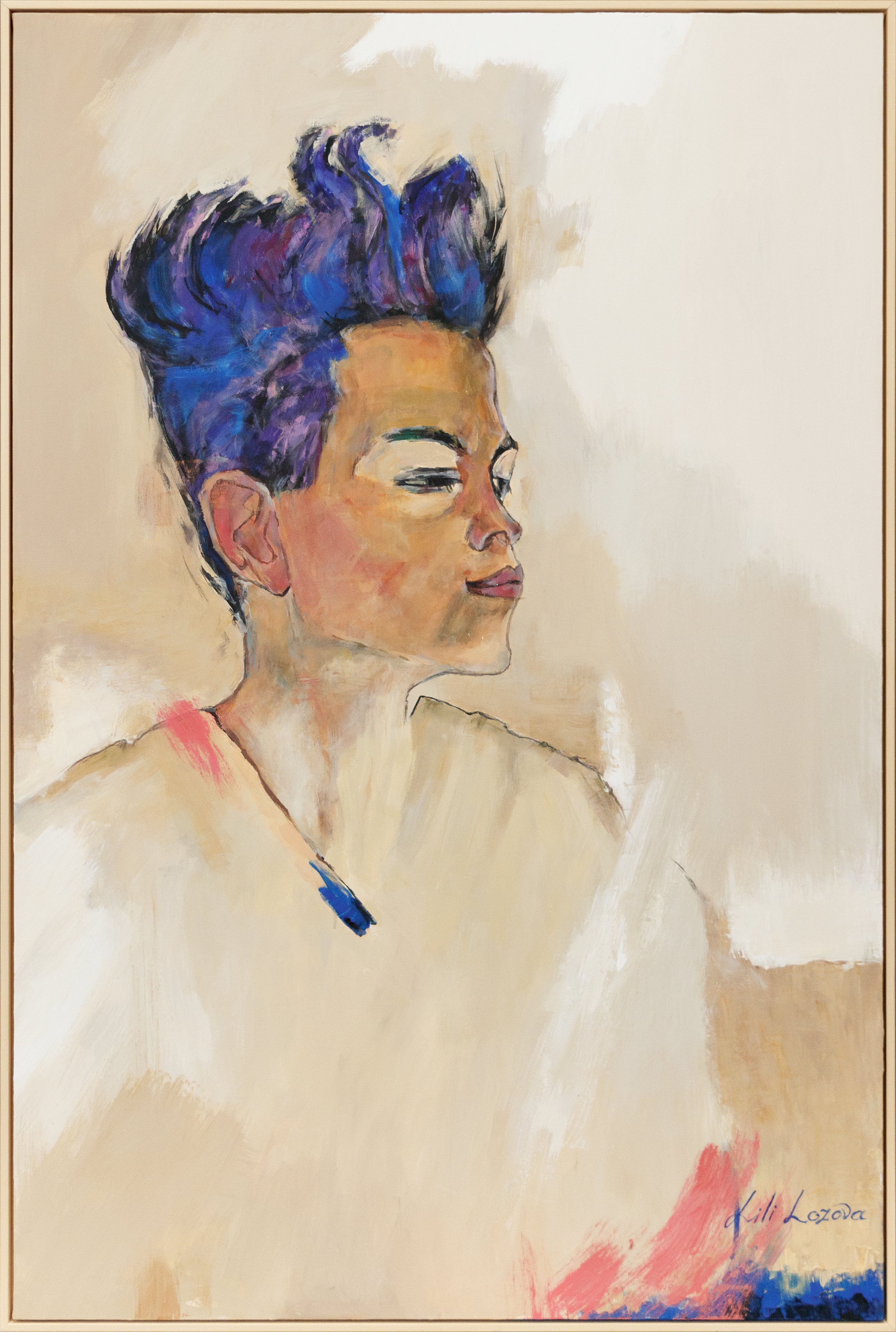 • Acrylgemälde in Porträtstil mit lila Haarakzenten