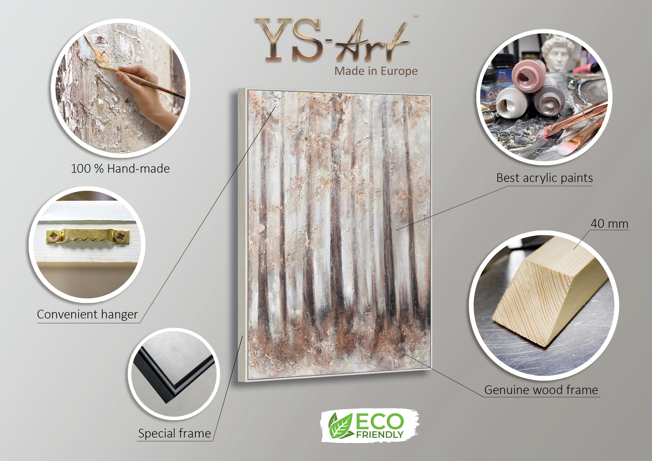 Luomme maalauksia ja seinäkuvia eri tyyleissä, koossa ja aiheissa. Löydät meiltä oman suosikkiteoksesi eri teemojen, tilaisuuksien ja sisustustyylien mukaan. Valikoimaamme täydentävät myös poikkeukselliset sisustusesineet, kuten design-kellot. Sukella YS-ART-maailmaan sykähdyttävien värien ja monipuolisten aiheiden parissa. Tutustu taiteilijoidemme teoksiin ja koe inspiraation ja intohimon merkitys.