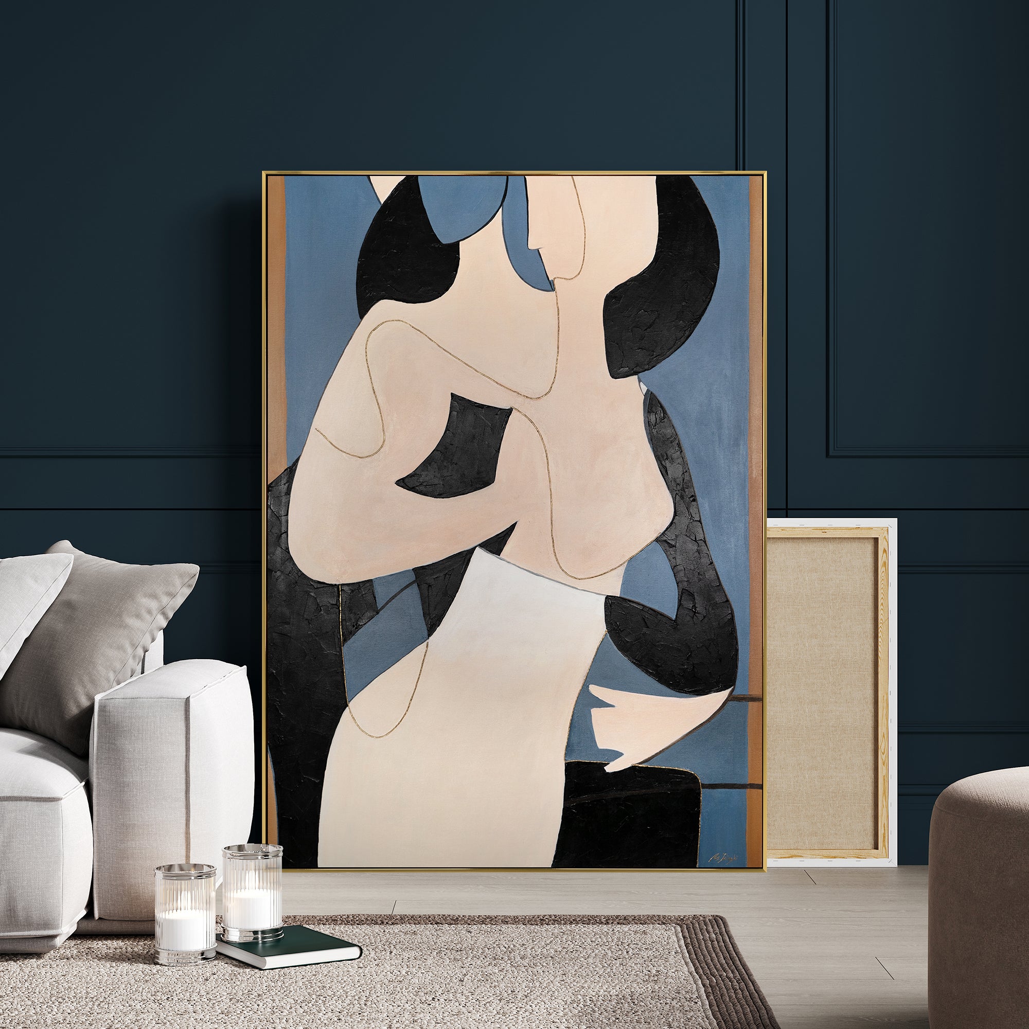 Löydä modernin Taiteen kauneus käsinmaalatulla Bilder Abstrakt Modern -maalauksellamme. Tämä ainutlaatuinen taideteos on lahjakkaan Taiteilijan luoma ja esittää kaksi Hahmoa kiehtovassa abstrakti maalaus -Tyylissä, joka nostaa Sisustuksesi uudelle Suunnittelun Tasolle. Maalauksen Mitat ovat 60x90 cm, ja se on maalattu korkealaatuiselle Kankaalle, joka takaa pitkän Käyttöiän.