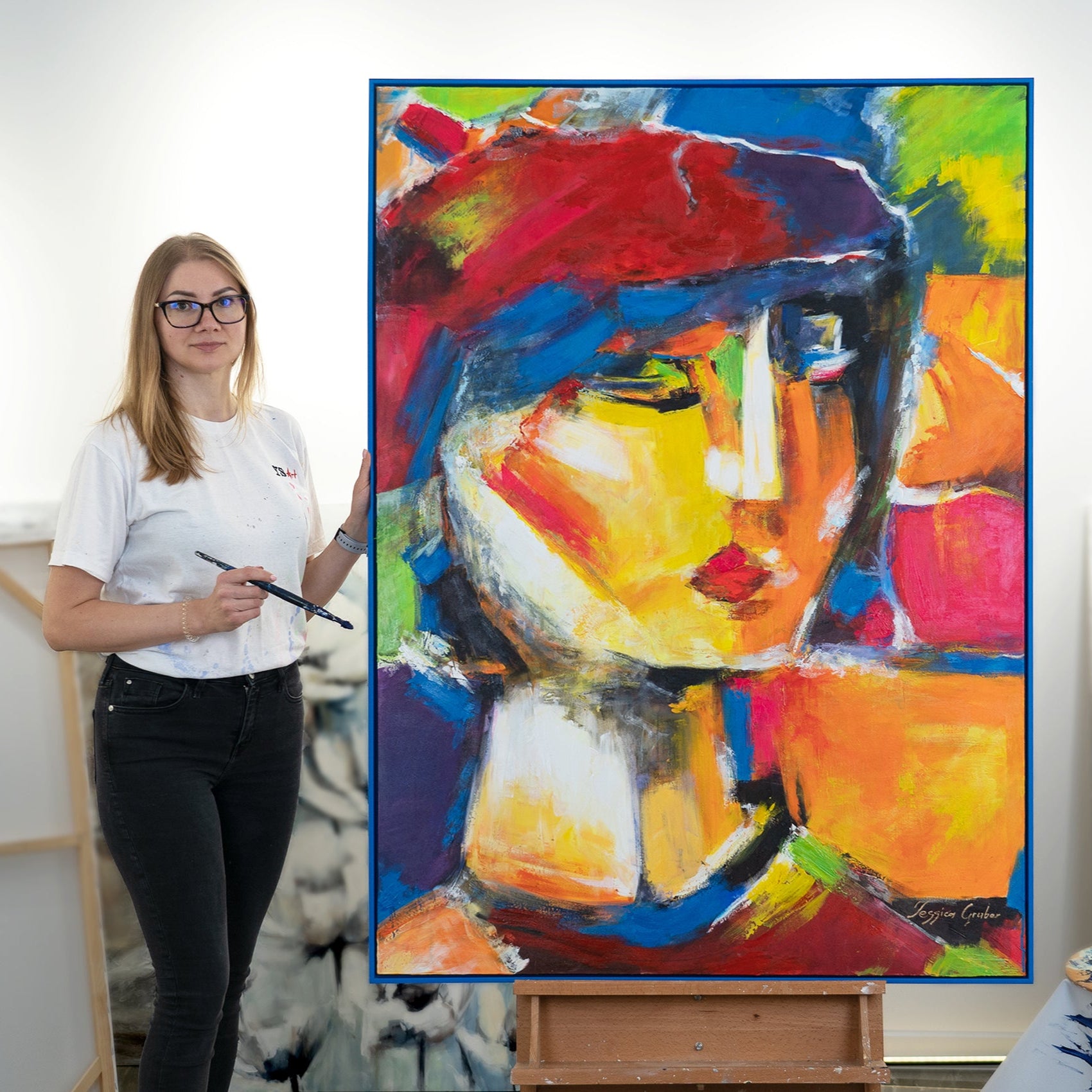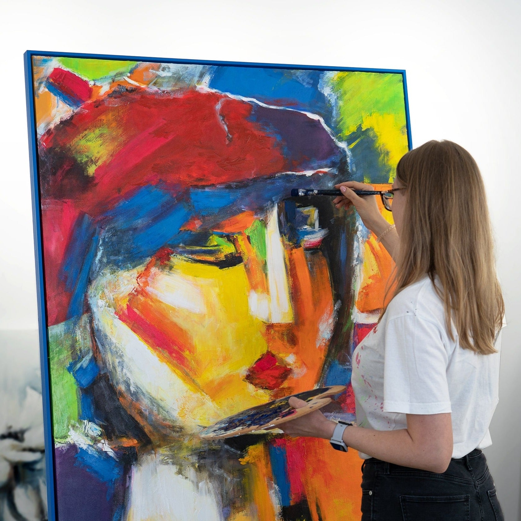 Rikastakaa Kotinne tällä värikkäällä, abstrakti taideteos, joka esittää eloisaa ja värikästä Muotokuvaa. Kuva hurmaa voimakkailla Väri sävyillä ja dynaamisilla Siveltimenvedoilla. Se on 100% käsinmaalattu ja korostuu tyylikkään Kehyksen kautta.