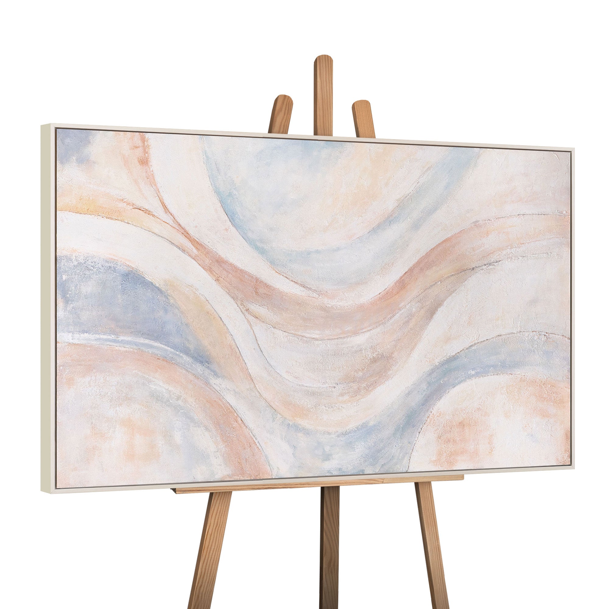 Käsinmaalattu akryylimaalaus "Tuulen linjat" hurmaa hennolla värikokonaisuudellaan, jossa pehmeät pastellisävyt kuten beige, sininen ja roosa sulautuvat yhteen. Kaarevat linjat muodostavat harmonisen abstrakti taulu -teoksen, joka tuo mieleen liikkeen, keveyden ja luonnon lempeät tunnelmat. Rakenteellinen pinta antaa syvyyttä ja tekee teoksesta erityisen katseenvangitsijan.