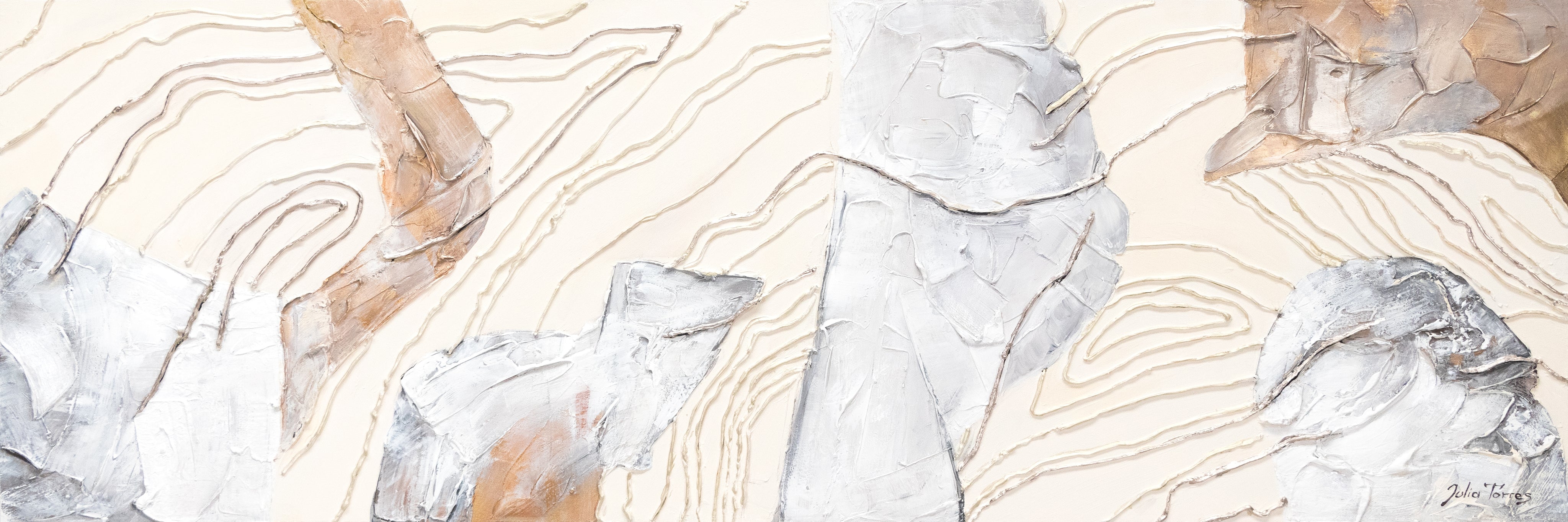 Sukelkaa abstraktin Taiteen maailmaan tämän vaikuttavan käsinmaalatun taideteoksen avulla. Hienot Linjat ja pehmeät Väri sävyt luovat elegantin ja rauhoittavan Tunnelman, joka kohottaa jokaisen Tilaan. Jokainen yksityiskohta tästä Taideteoksesta on 100% käsintehty, mikä tekee siitä ainutlaatuisen Unikaatin. Nauttikaa ilmaisesta Toimituksesta suoraan kotiinne.