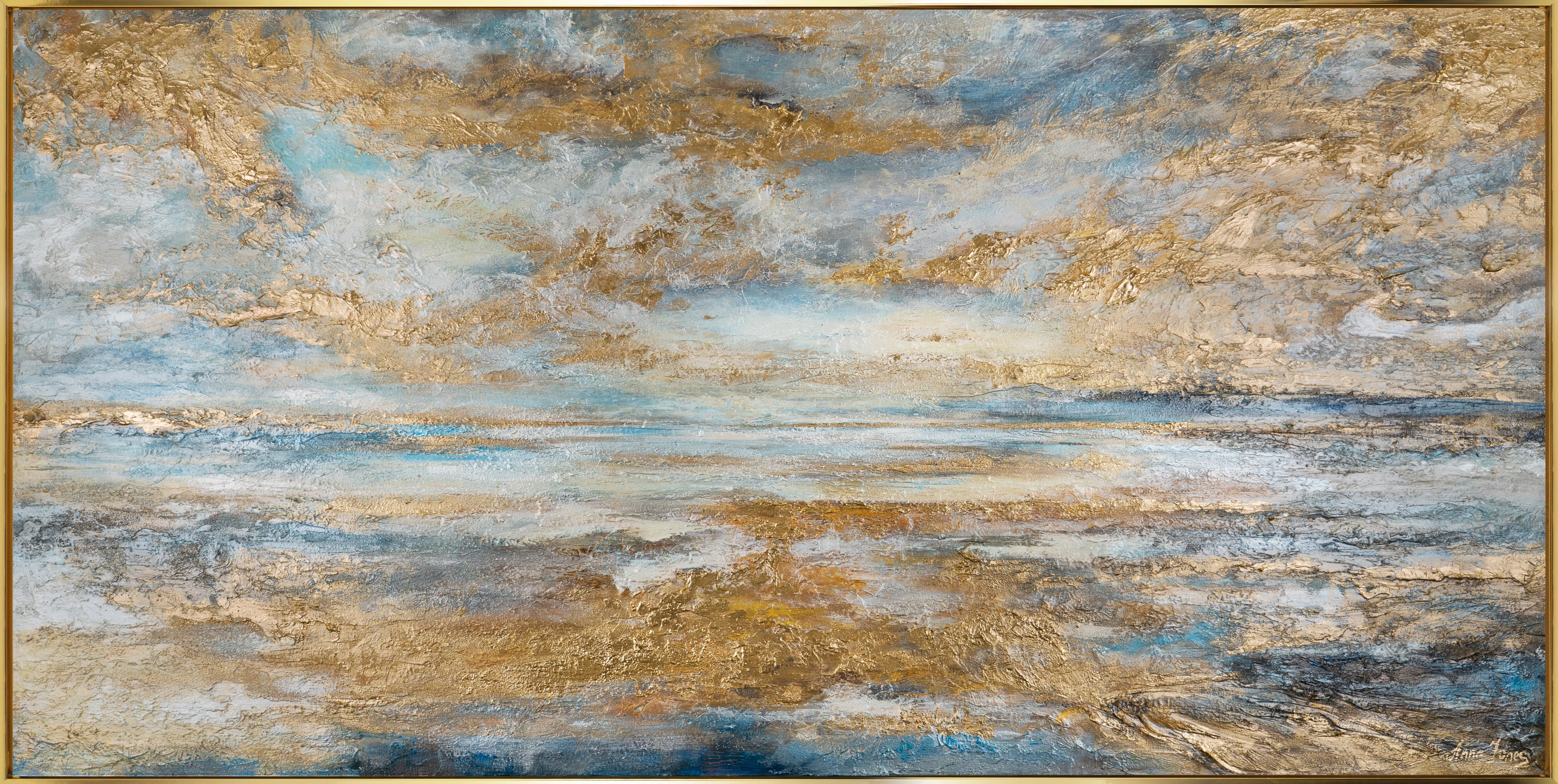 Dieses beeindruckende abstrakte maisemamaalaus kankaalla besticht durch seine harmonische Farbkombination aus Blau- und Goldtönen. Die goldenen Akzente verleihen dem Bild eine edle und luxuriöse Ausstrahlung, während die abstrakte Darstellung des Meeres eine tiefe Ruhe und Gelassenheit vermittelt. Jedes Detail wurde sorgfältig von Hand gemalt, wodurch dieses taideteos einzigartig und unverwechselbar wird.