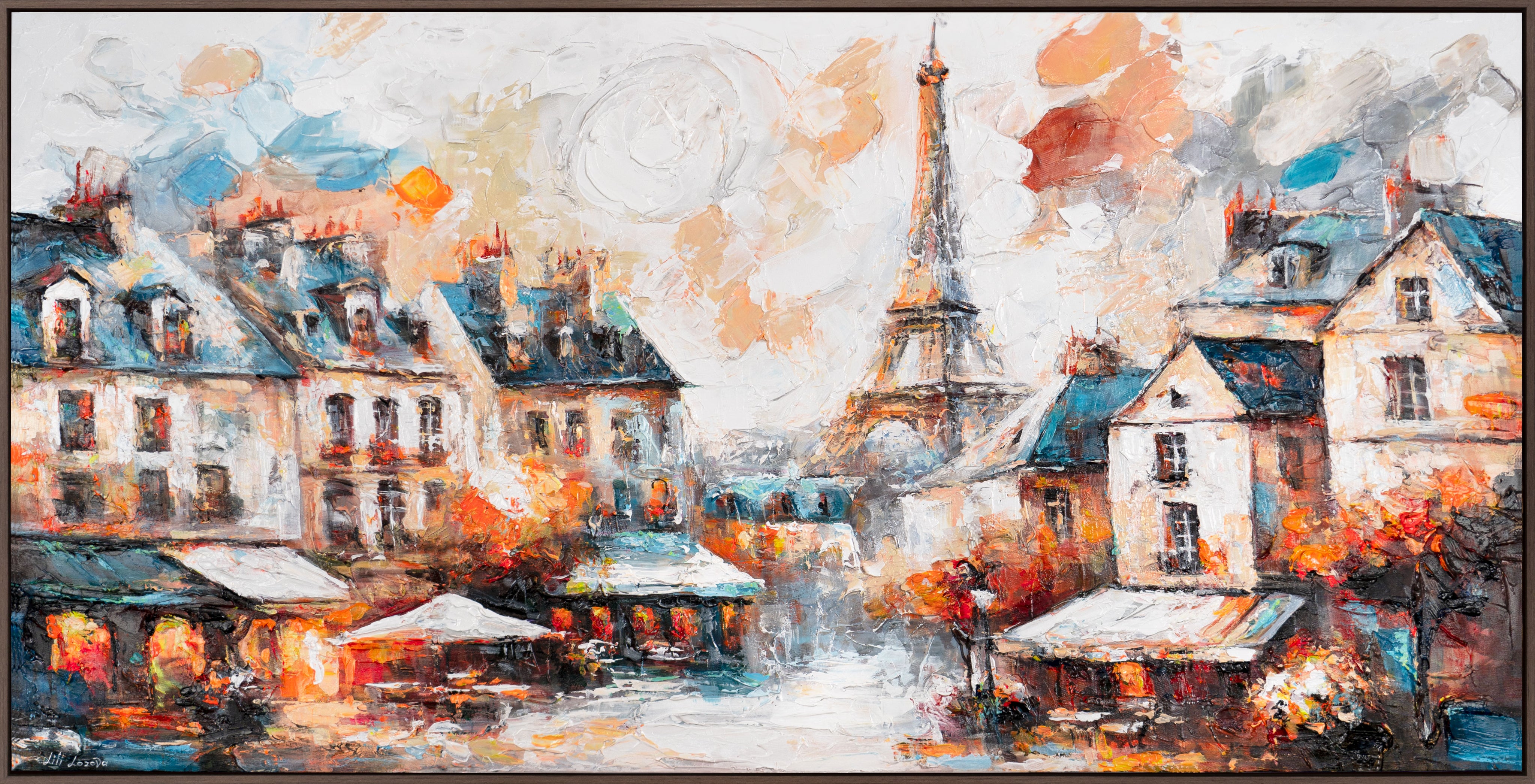 Tämä käsinmaalattu kankaalle tehty taulu esittää elävän, urbaanin Pariisin katunäkymän pehmeissä, lämpimissä sävyissä. Impressionistiset siveltimenvedot ja harmoninen värikoostumus vangitsevat kaupungin tunnelman ja kutsuvan ilmapiirin. Yksityiskohtaiset julkisivut ja pehmeä valo tekevät teoksesta täydellisen seinäsisustuselementin olohuoneisiin, toimistoihin tai lounge-tiloihin.