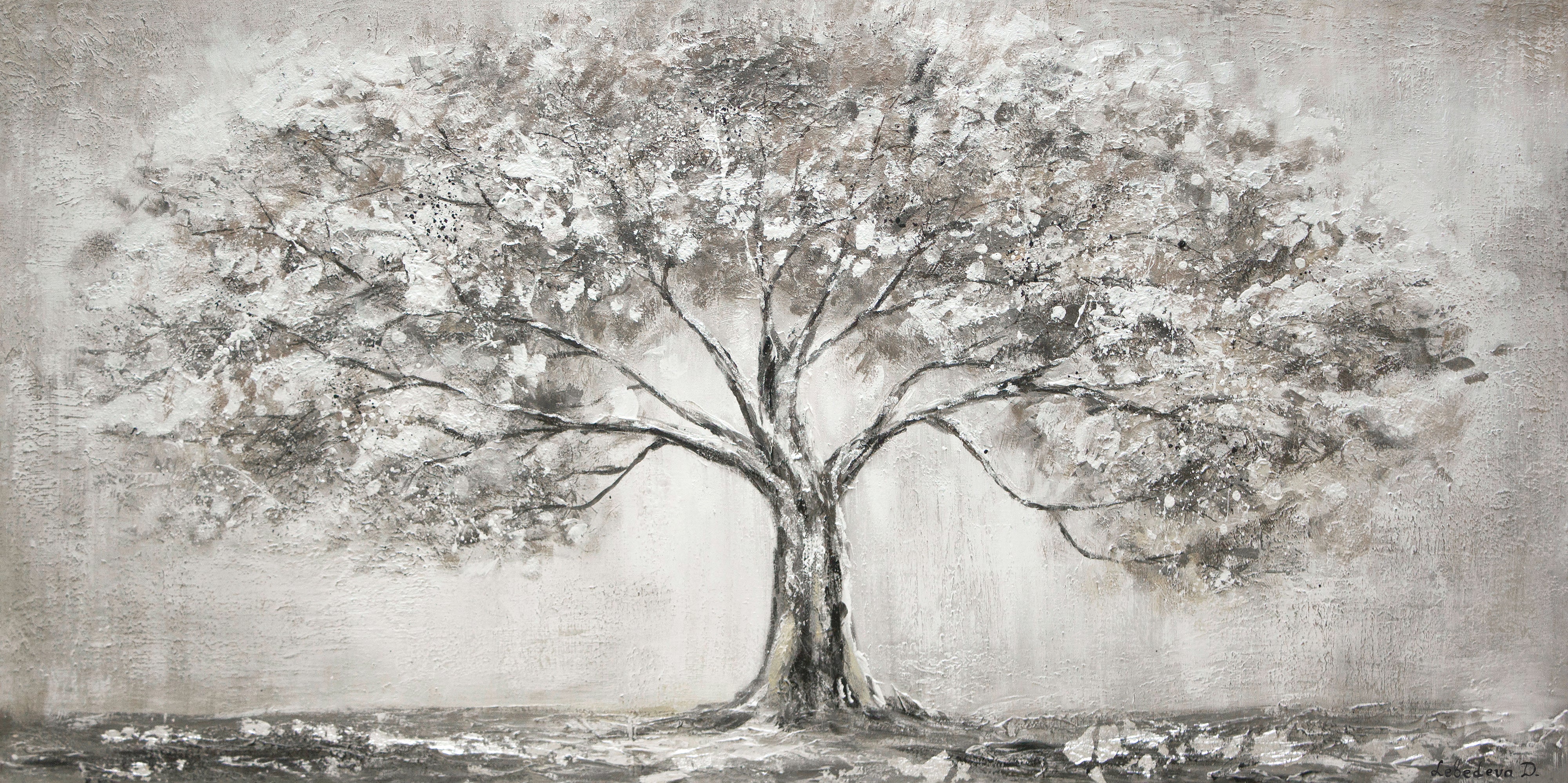 • Gesamtansicht Leinwandbild Lebensbaum in Grautönen