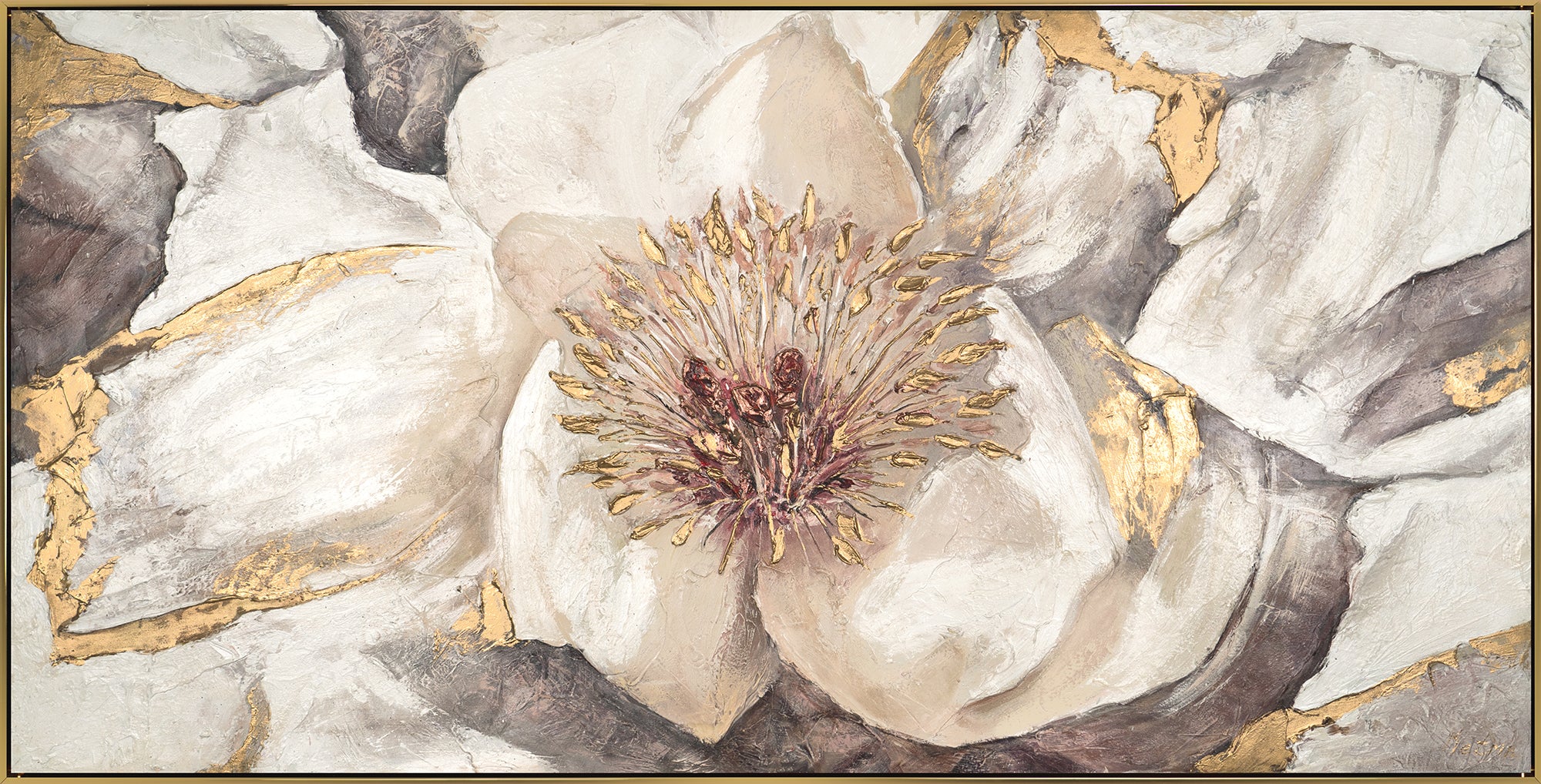 Vaalea, aurinkoinen kukka luo kodin ilmapiiriin lämpöä ja kodikkuutta. Tällainen maalaus täydentää makuuhuoneen, olohuoneen tai työhuoneen sisustusta. Kangas on maalattu korkealaatuisilla akryyliväreillä ja pingotettu puukehykselle.