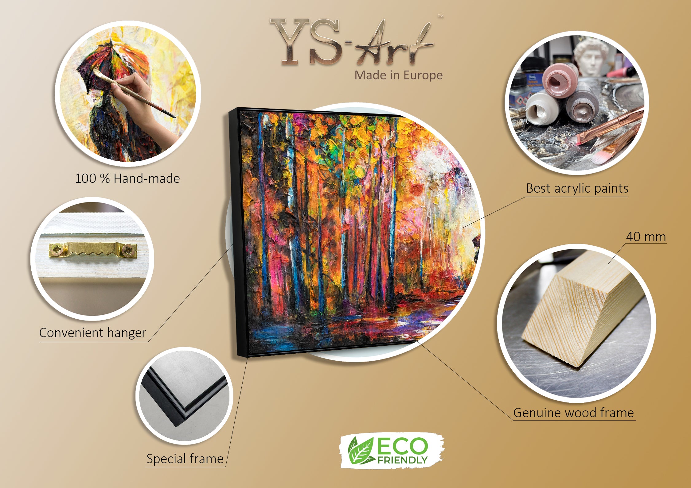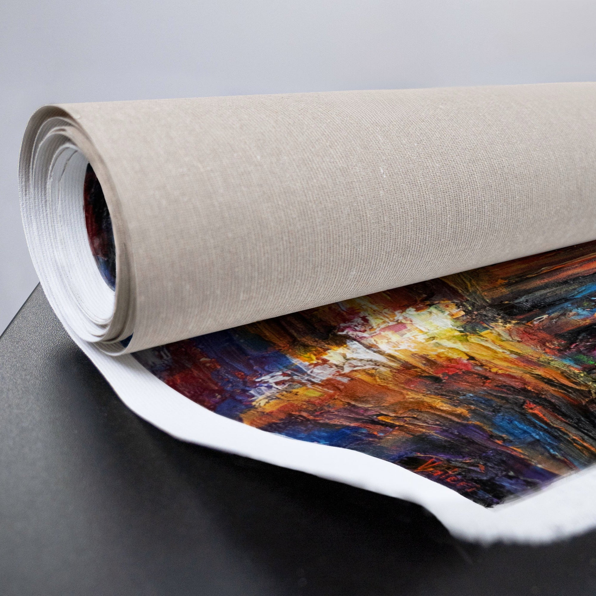 - Erityispiirteet: Käsinmaalattu, rakenteellinen pinta, kehystetty
