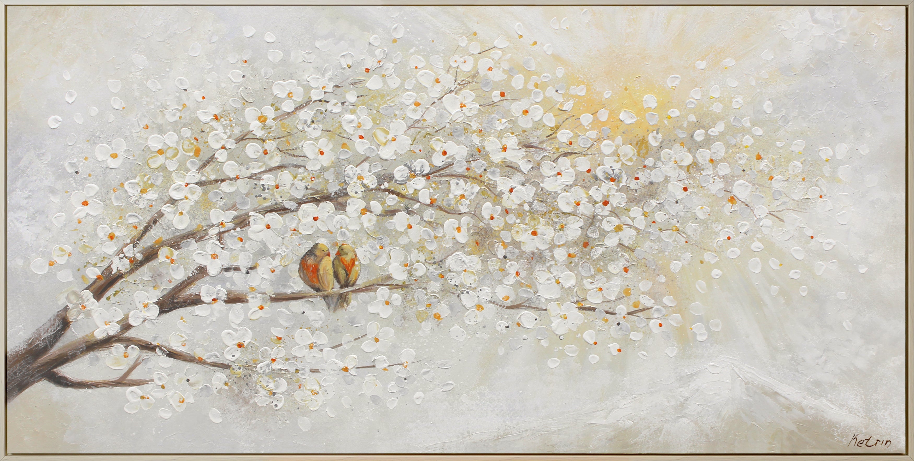 Tämä Maalaus, jonka Taiteilijamme on maalannut Lämmin ja Mukava Värit, on Täydellinen Lisä Sisustukseenne. Lisäksi Käsinmaalatut Maalaukset ovat Täydellinen Lahja Rakkaille, sillä Kukivat Puiden symboloivat Perheen Onnea ja Naisen Kauneutta.