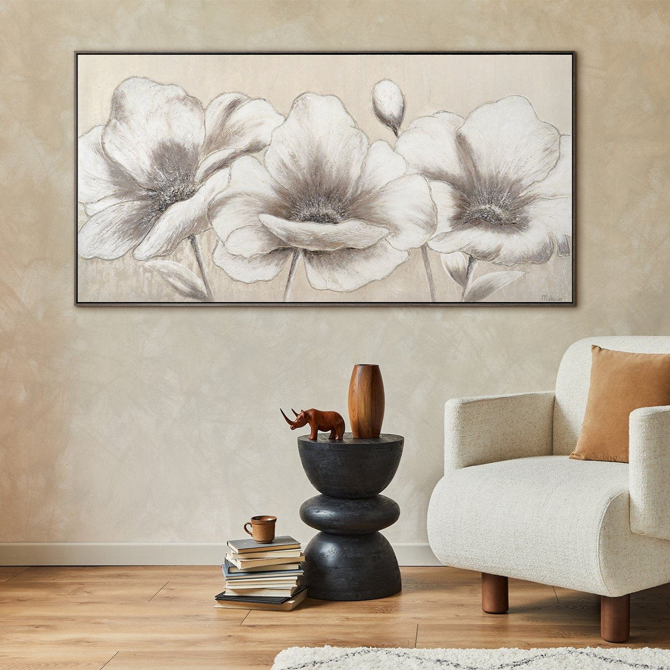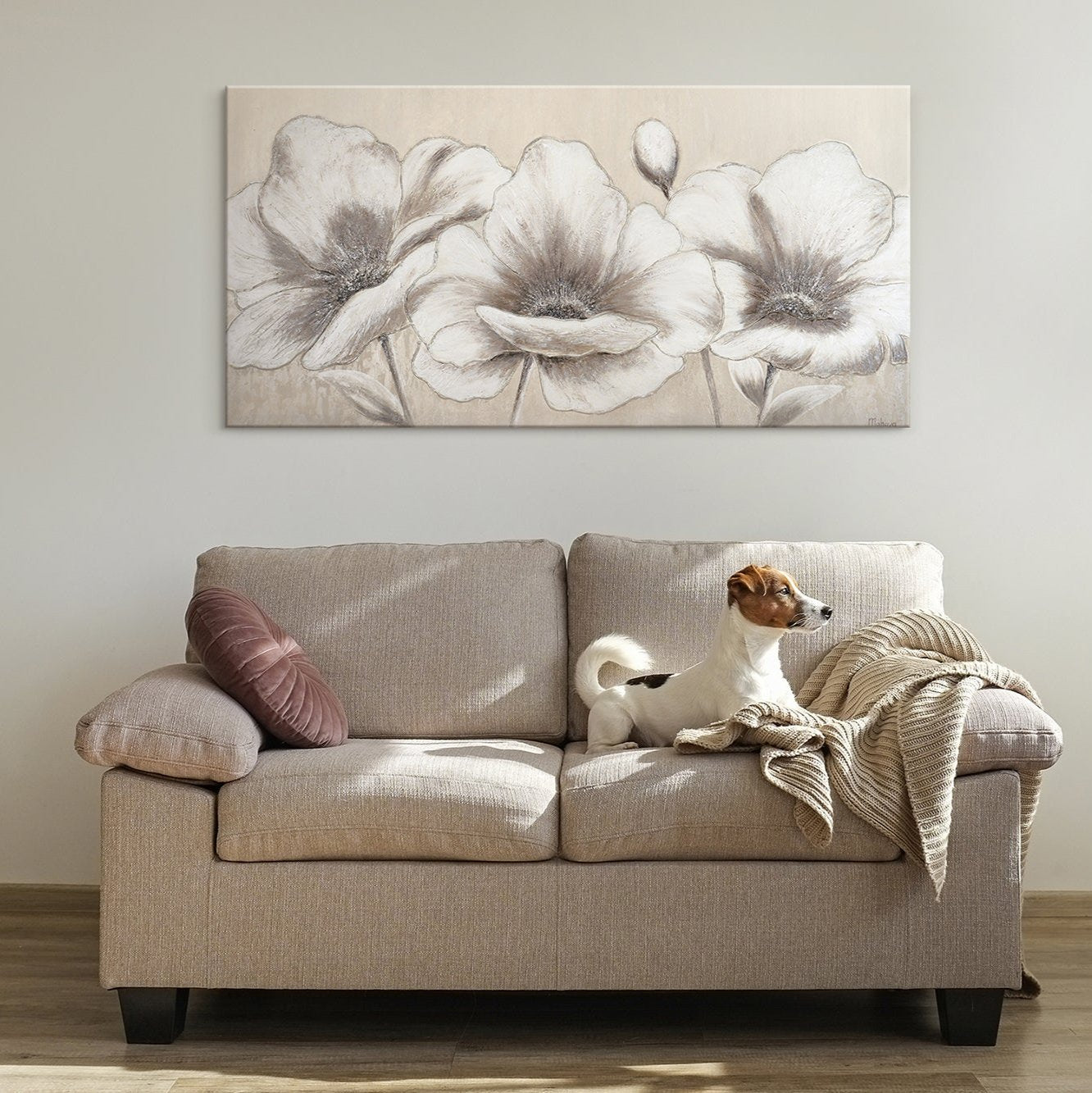 Tämä moderni akryylimaalaus taulu hurmaa eleganteilla kukka-aiheillaan, jotka on toteutettu pehmeissä ja harmonisissa Sävyissä Kangaslle. Yksityiskohtainen Kukintojen esitys välittää ajattoman Kauneuden, joka sopii täydellisesti mihin tahansa Asuintilaan. Hienovarainen Väritus varmistaa, että maalaus sulautuu saumattomasti jokaiseen Sisustukseen ja luo rauhoittavan Tunnelman.