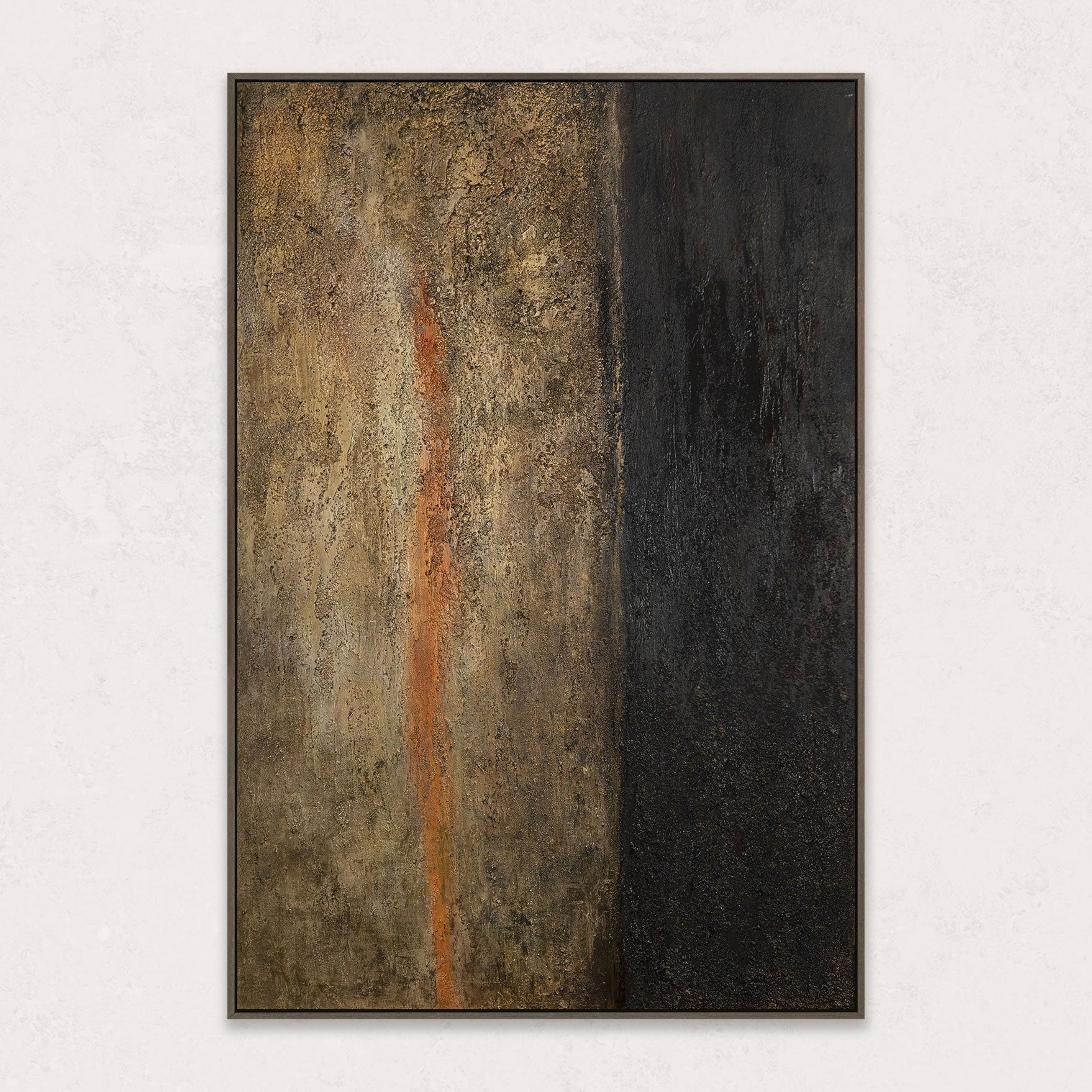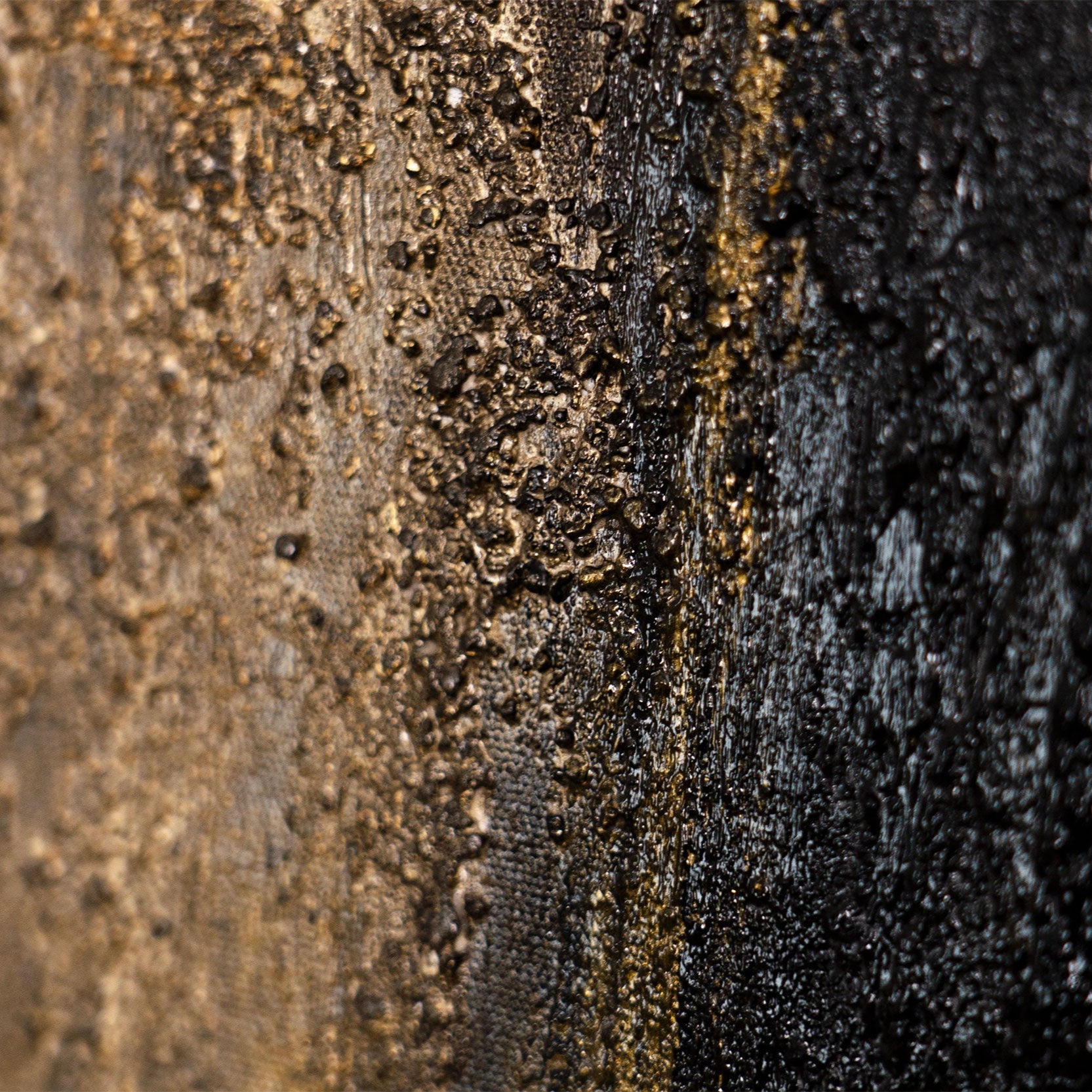 „Ajan syvyys“ on voimakas, käsinmaalattu akryylimaalaus, joka hurmaa kontrastikkaalla värimaailmallaan ja intensiivisellä rakenteellaan. Syvä musta, lämpimät ruskean sävyt, jalokultainen kiilto ja hienovarainen punainen aksentti luovat mystisen ja samalla elegantin vaikutelman. Reliefimäinen pinta tuo teokseen syvyyttä ja voimaa.