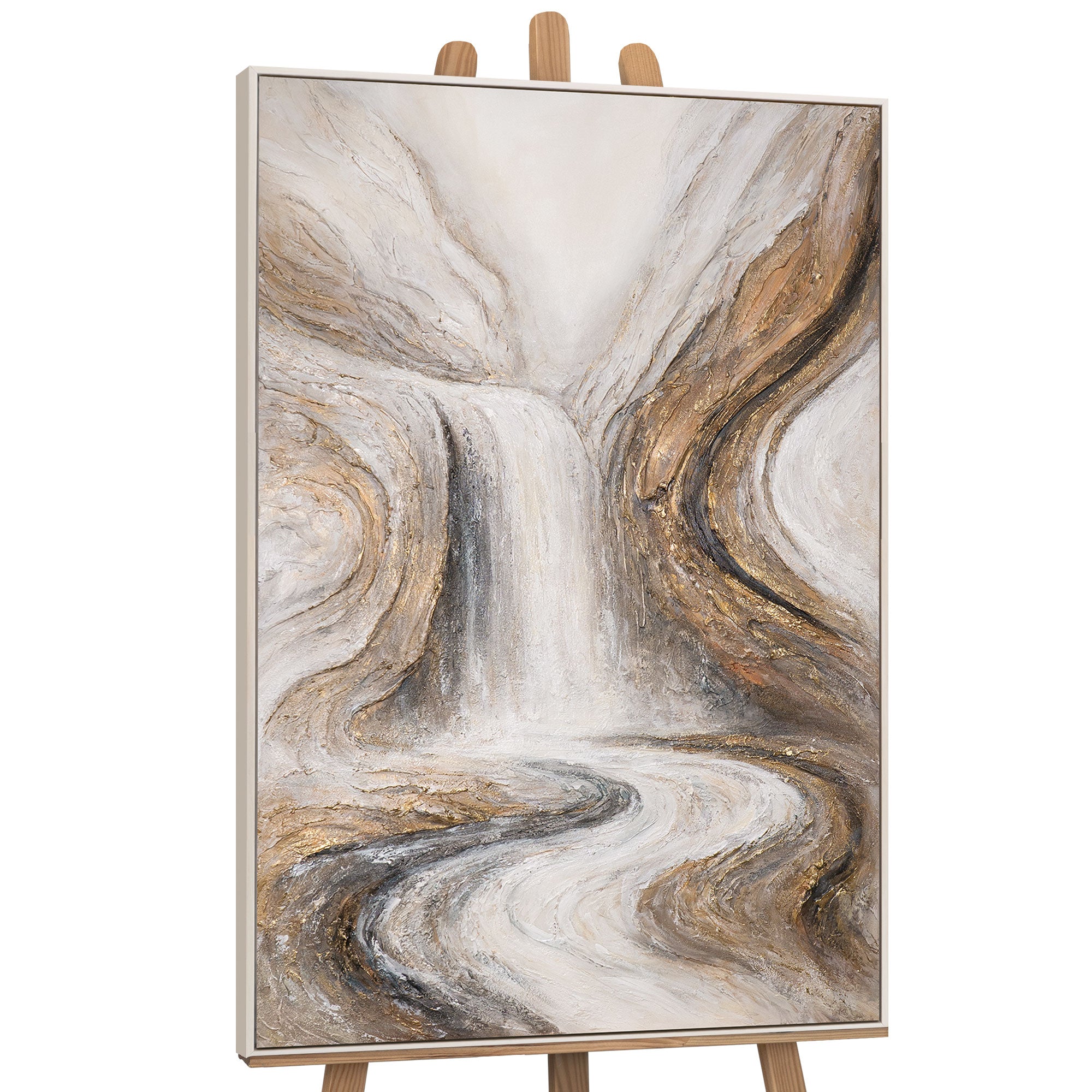 "Unelmien vesiputous" on kiehtova käsinmaalattu akryylityö, joka vangitsee vesiputouksen virtaavan energian harmonisissa beige-, valko- ja kultasävyissä. Reliefimäinen pinta korostaa veden elävyyttä ja antaa teokselle syvyyttä ja dynamiikkaa. Pehmeät värisiirtymät ja kultaiset yksityiskohdat korostavat liikettä ja tuovat eleganssia mihin tahansa ympäristöön.