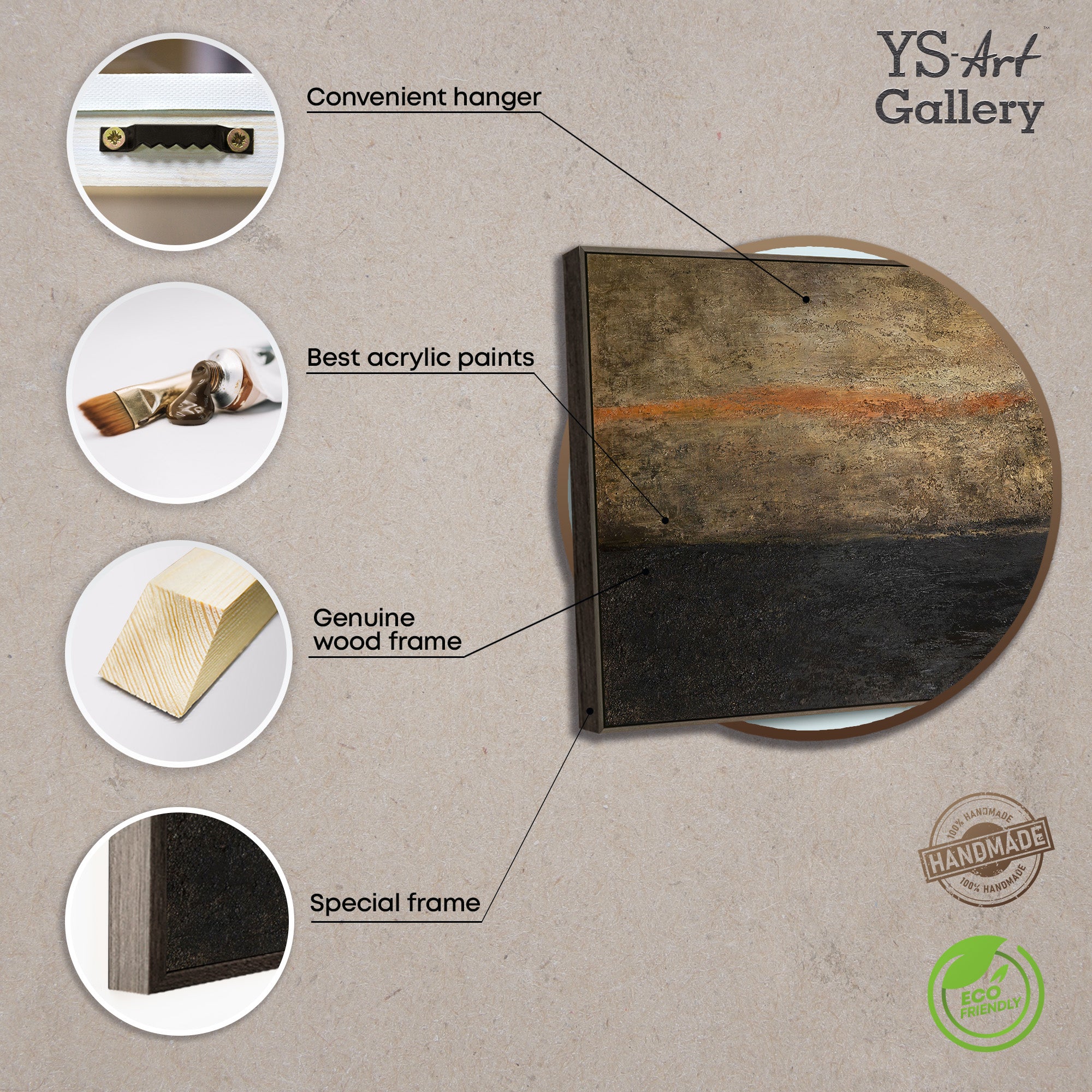 Das handgemalte Gemälde auf Leinwand ist in einem grauen Rahmen präsentiert und eignet sich ideal als moderne Wandkunst für Wohnzimmer, Büro oder repräsentative Räume. Die strukturierte Oberfläche sorgt für eine hochwertige, ruhige Ausstrahlung und fügt sich harmonisch in zeitgenössische Interieurs ein.
