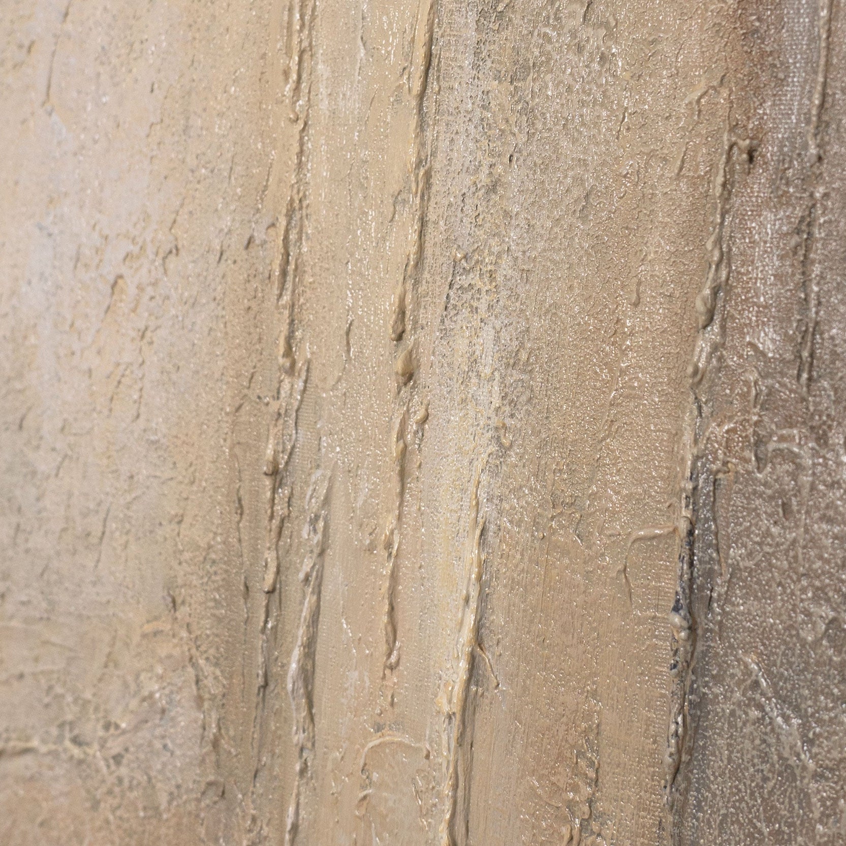 ”Ajan pystysuorat” on seesteinen, strukturoitu abstrakti maalaus, joka luo selkeän ja tasapainoisen sommitelman vaakasuuntaisten ja pystysuuntaisten kerrosten avulla. Beigen, harmaan ja lämpimien luonnon sävyjen lempeät siirtymät muistuttavat geologisia muodostumia ja antavat akryylimaalaukselle hiljaisen syvyyden. Hienovarainen pinta korostaa teoksen käsinmaalattua luonnetta.