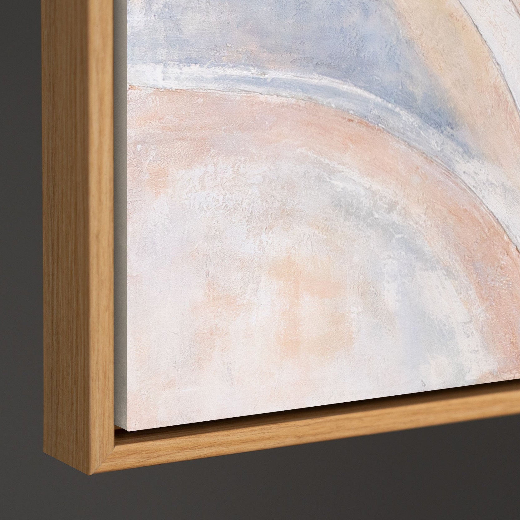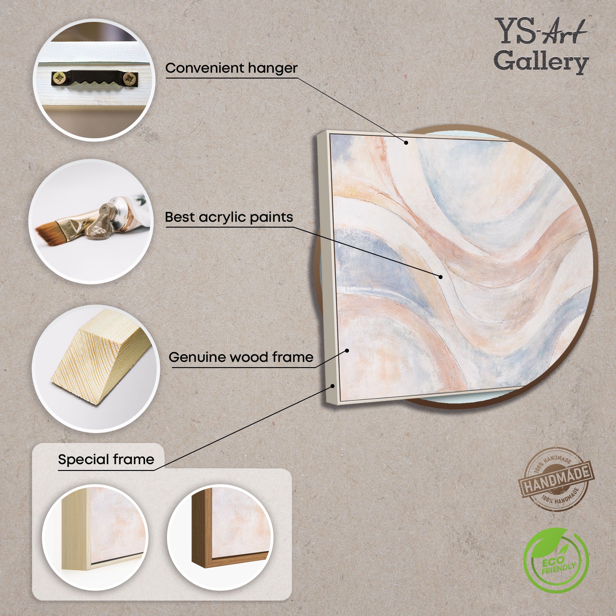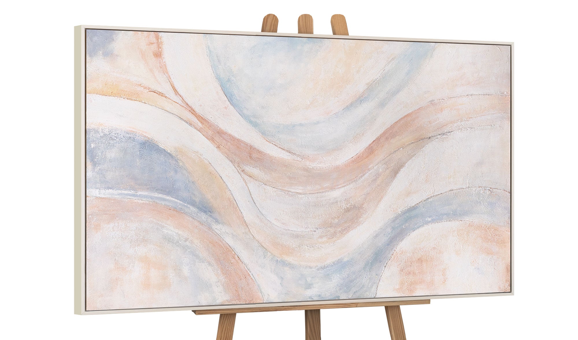 Käsinmaalattu akryylimaalaus "Tuulen linjat" hurmaa hennolla värikokonaisuudellaan, jossa pehmeät pastellisävyt kuten beige, sininen ja roosa sulautuvat yhteen. Kaarevat linjat muodostavat harmonisen abstrakti taulu -teoksen, joka tuo mieleen liikkeen, keveyden ja luonnon lempeät tunnelmat. Rakenteellinen pinta antaa syvyyttä ja tekee teoksesta erityisen katseenvangitsijan.