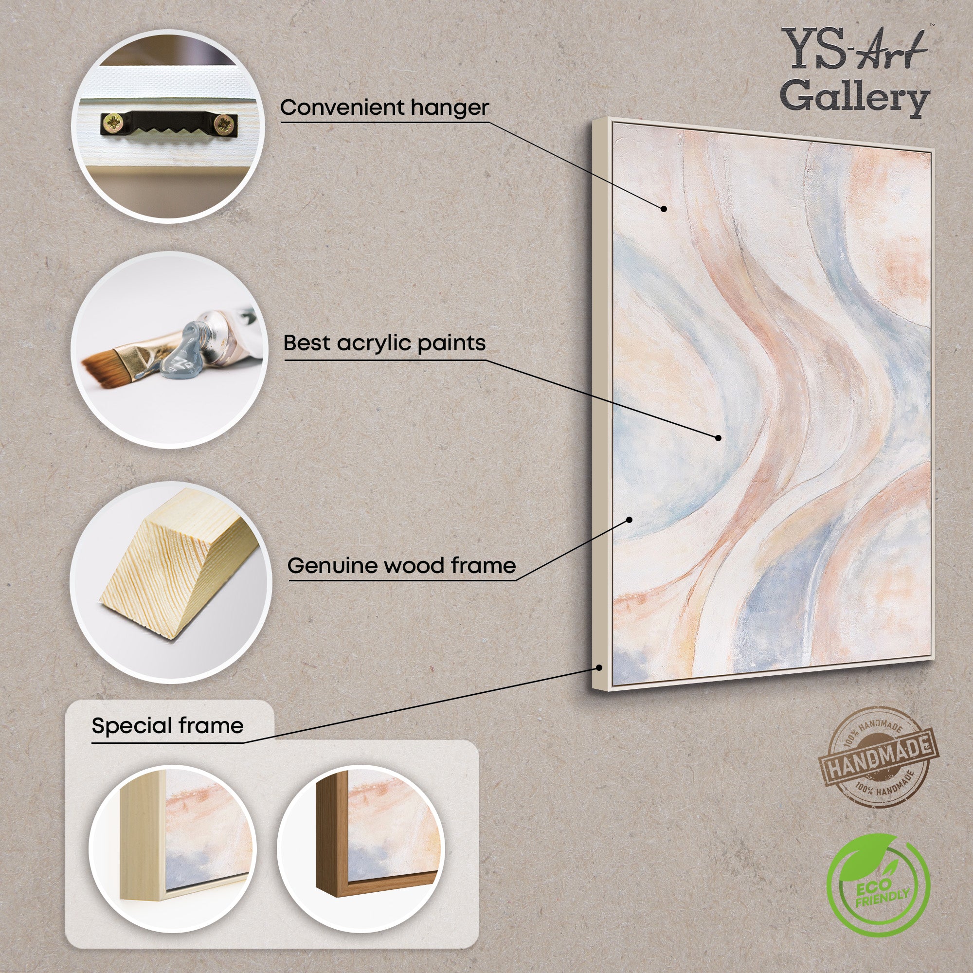 - Käsinmaalattu: Kyllä, jokainen akryylimaalaus on ainutlaatuinen