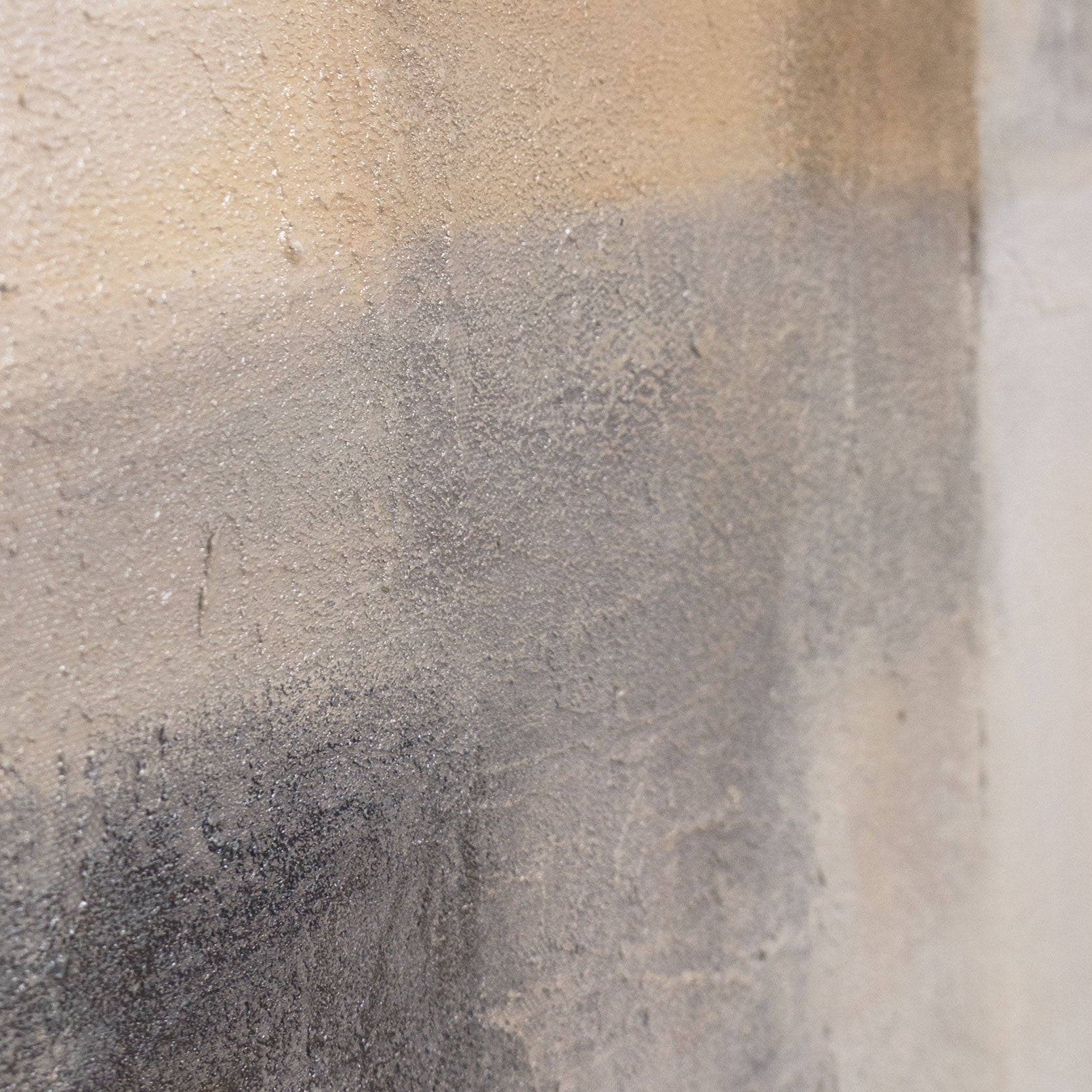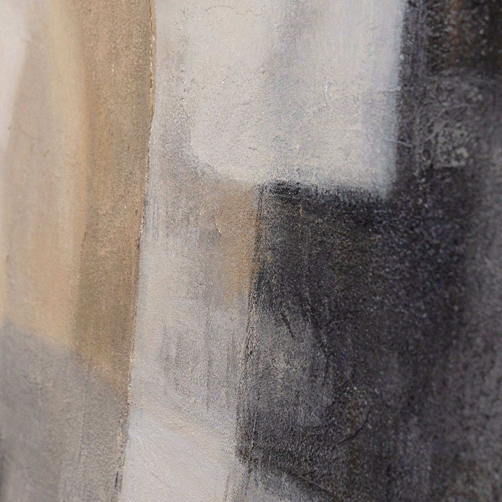”Aavemainen valo” esittelee pehmeän, lähes utuisen yhdistelmän beigen, harmaan ja kerman sävyjä. Pehmeät siirtymät kohtaavat selkeät geometriset yksityiskohdat luoden valon ja varjon leikin, joka on sekä hienovarainen että voimakas. Teksturoitu pinta antaa maalaukselle syvyyttä ja tuo esiin jokaisen värivivahteen.