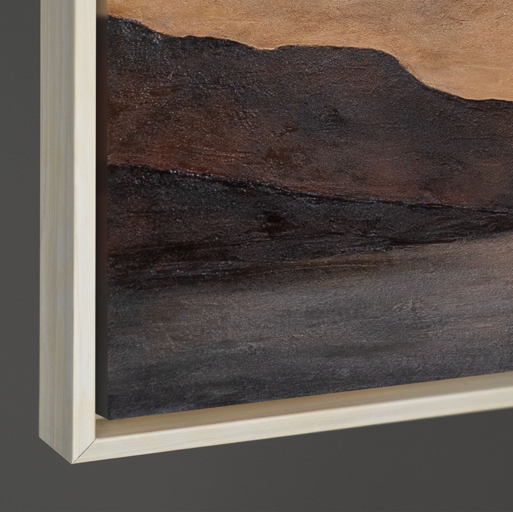 Nauti rauhallisesta tunnelmasta käsinmaalatun canvas taulu "Lempeä auringonnousu" -teoksen avulla. Lämpimät maanläheiset sävyt beigessä, ruskeassa ja harmaassa sulautuvat yhteen muodostaen harmonisen maisemamaalaus, joka vangitsee uuden päivän alun rauhan ja levollisuuden. Rakenteellinen pinta lisää syvyyttä ja tekee maalauksesta elegantin katseenvangitsijan.