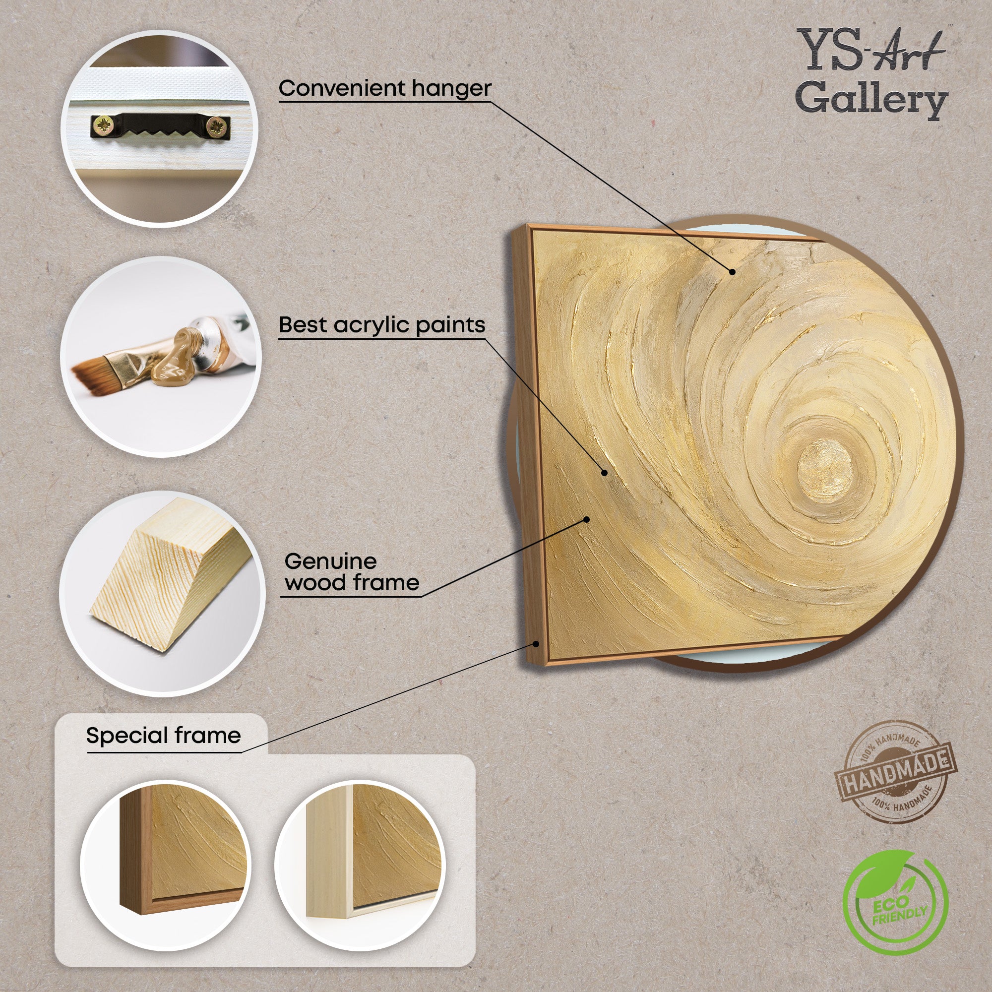 Handgemaltes abstraktes Gemälde mit Goldstruktur – Moderne Acrylbild mit Rahmen „Kreise der Zeit“