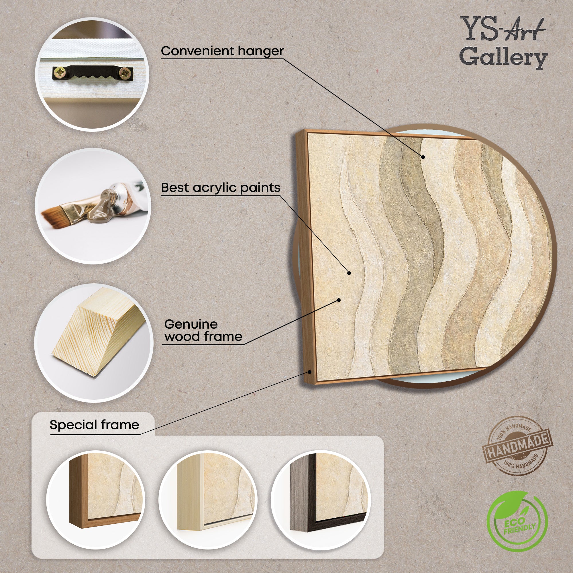 - Käsinmaalattu: Kyllä, jokainen teos on ainutlaatuinen
