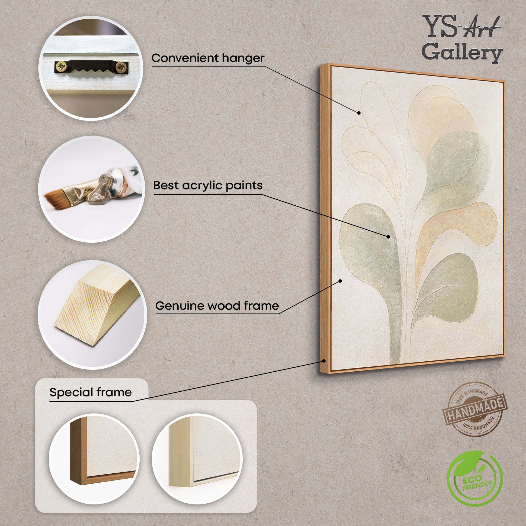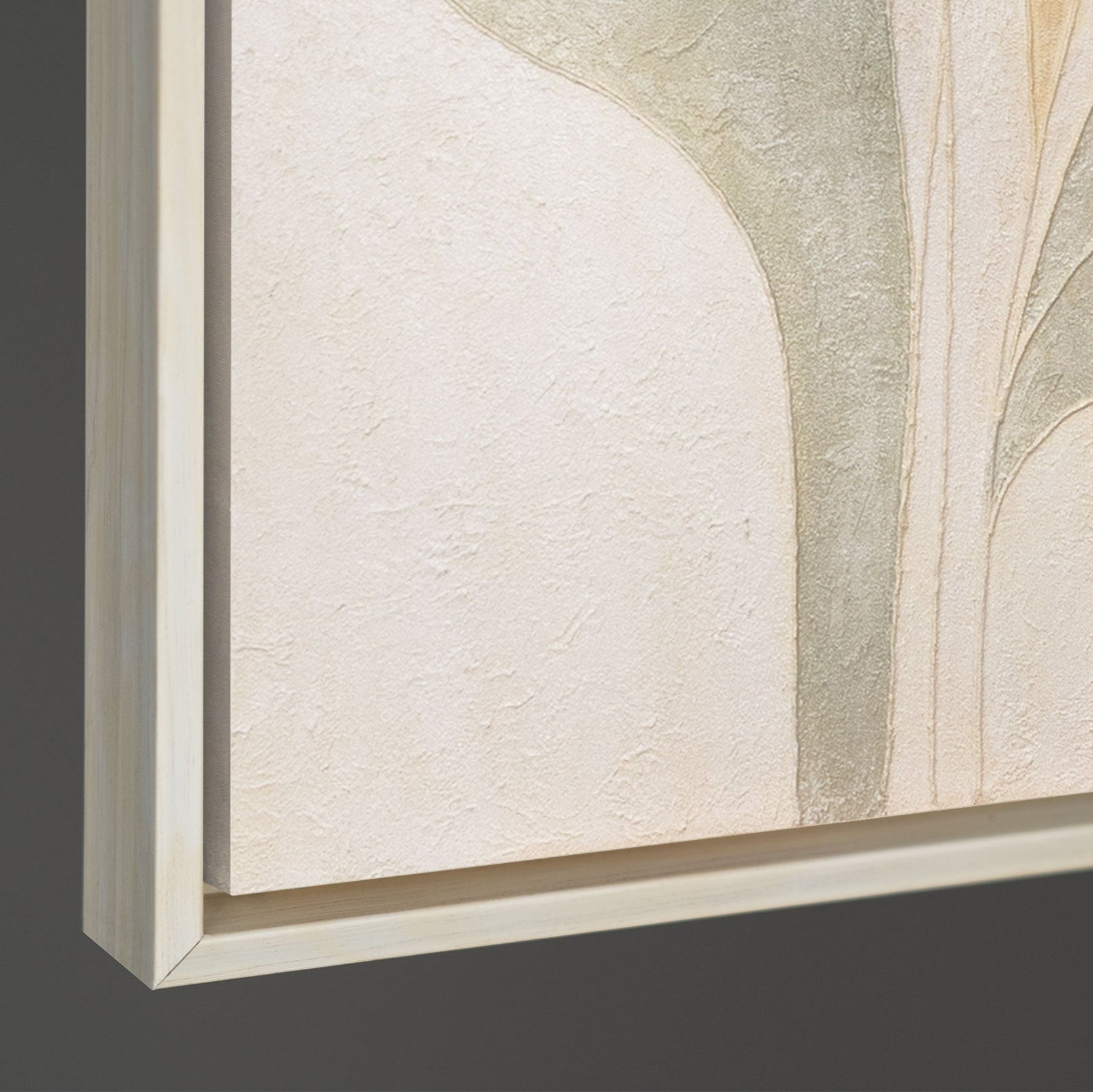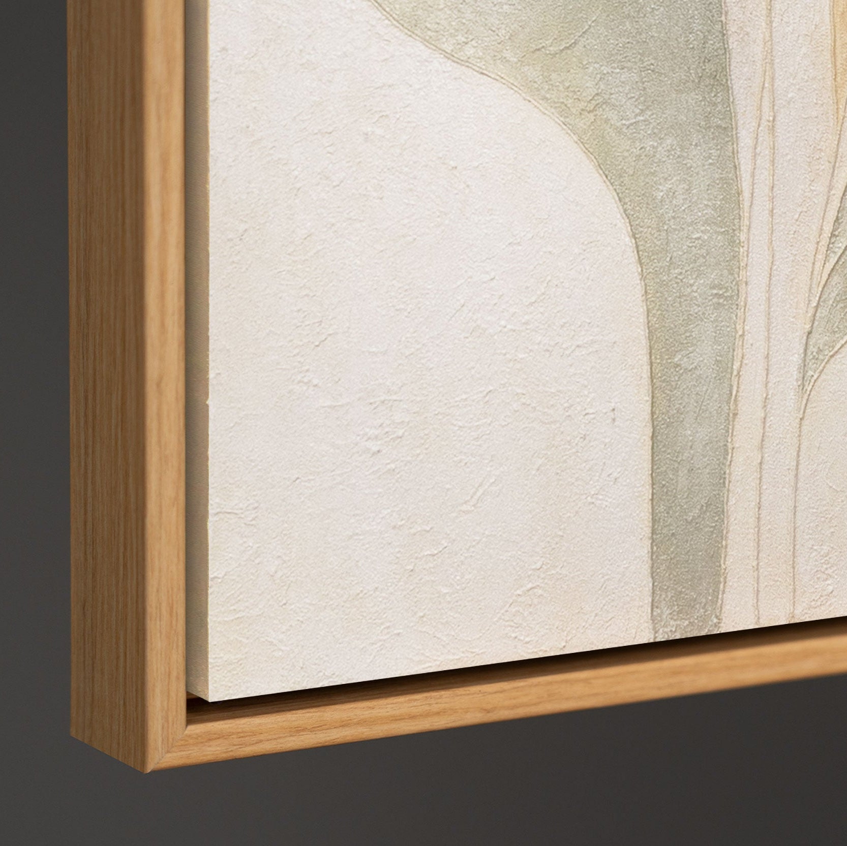 Tämä käsinmaalattu canvas taulu hurmaa orgaanisilla muodoillaan ja pehmeillä sävyillään beigessä, vihreässä ja hiekassa. Hienolla rakenteella toteutettuna teos näyttää kevyeltä, harmoniselta ja samalla elegantilta – symboli rauhalle ja luonnollisuudelle.