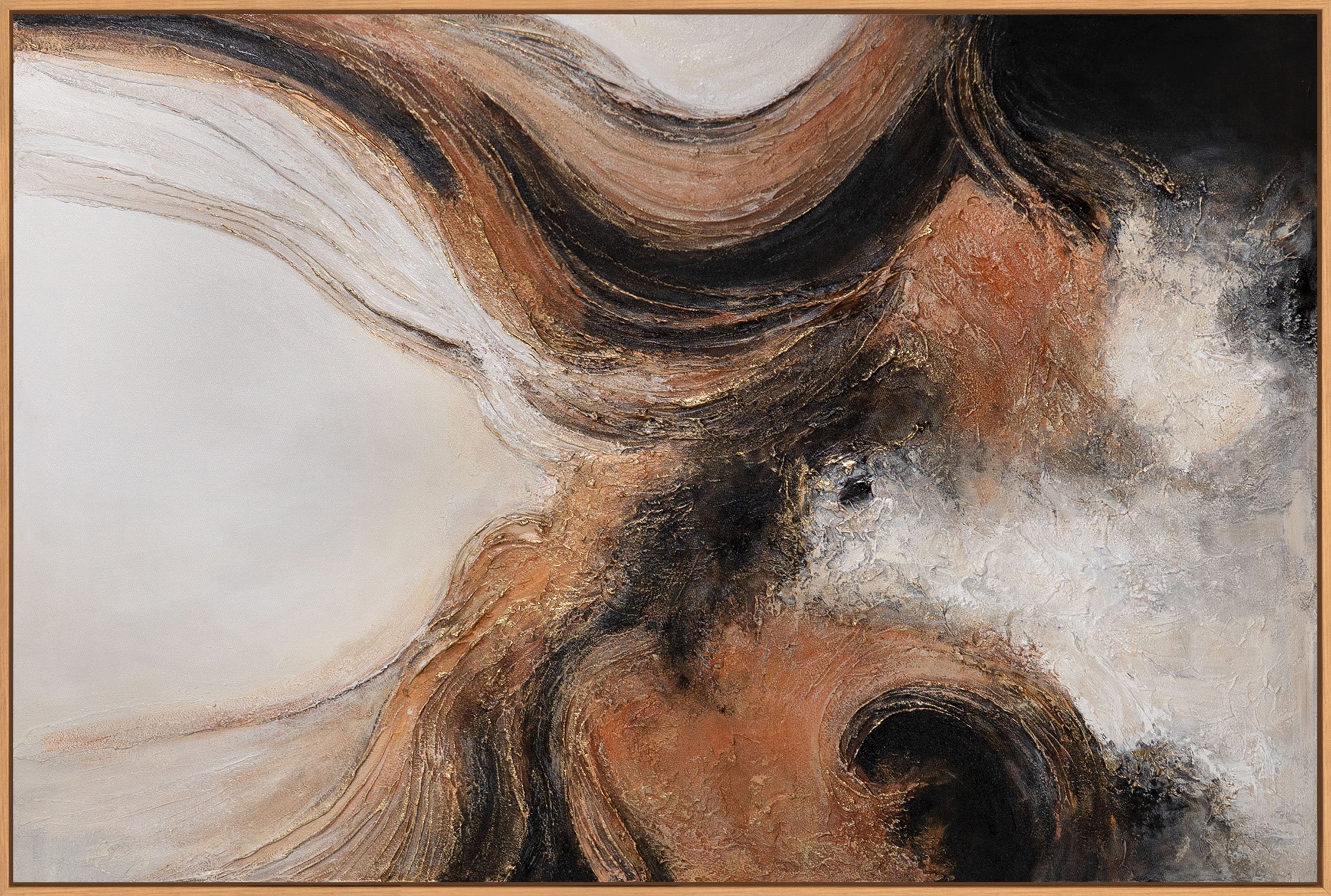 Käsinmaalattu kangasmaalaus on kehystetty ja sopii erinomaisesti moderniksi seinätaiteeksi olohuoneeseen, ruokailutilaan tai tyylikkääseen työhuoneeseen. Ilmeikäs rakenne tuo tilaan energiaa ja luonnetta ilman, että se vaikuttaa levottomalta, ja sopii harmonisesti nykyaikaisiin sisustuksiin.