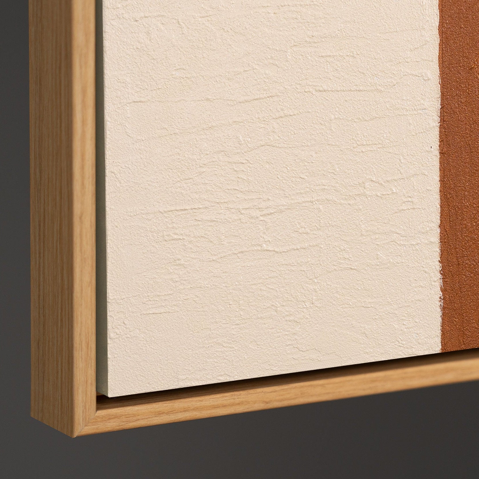 Käsinmaalattu kangasmaalaus esitetään kehyksessä ja sopii moderniksi seinäkoristeeksi olohuoneeseen, ruokailutilaan tai tyylikkääseen työhuoneeseen. Hillitty värimaailma on monipuolisesti yhdisteltävissä ja tukee tasapainoista, nykyaikaista sisustusta.