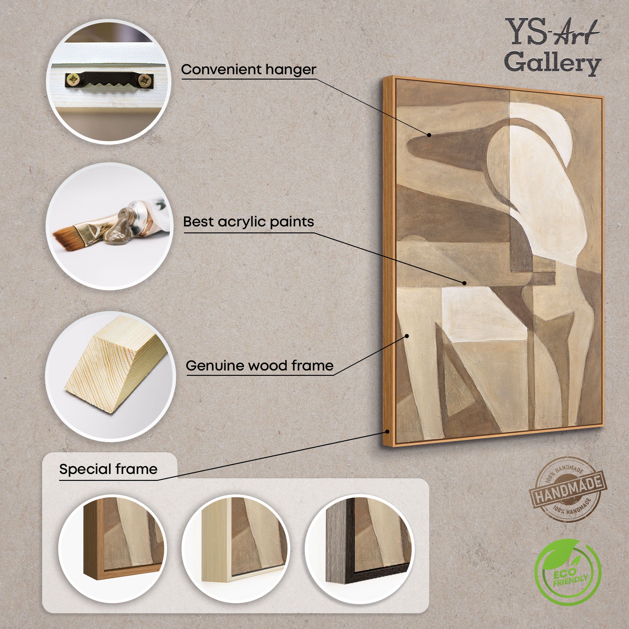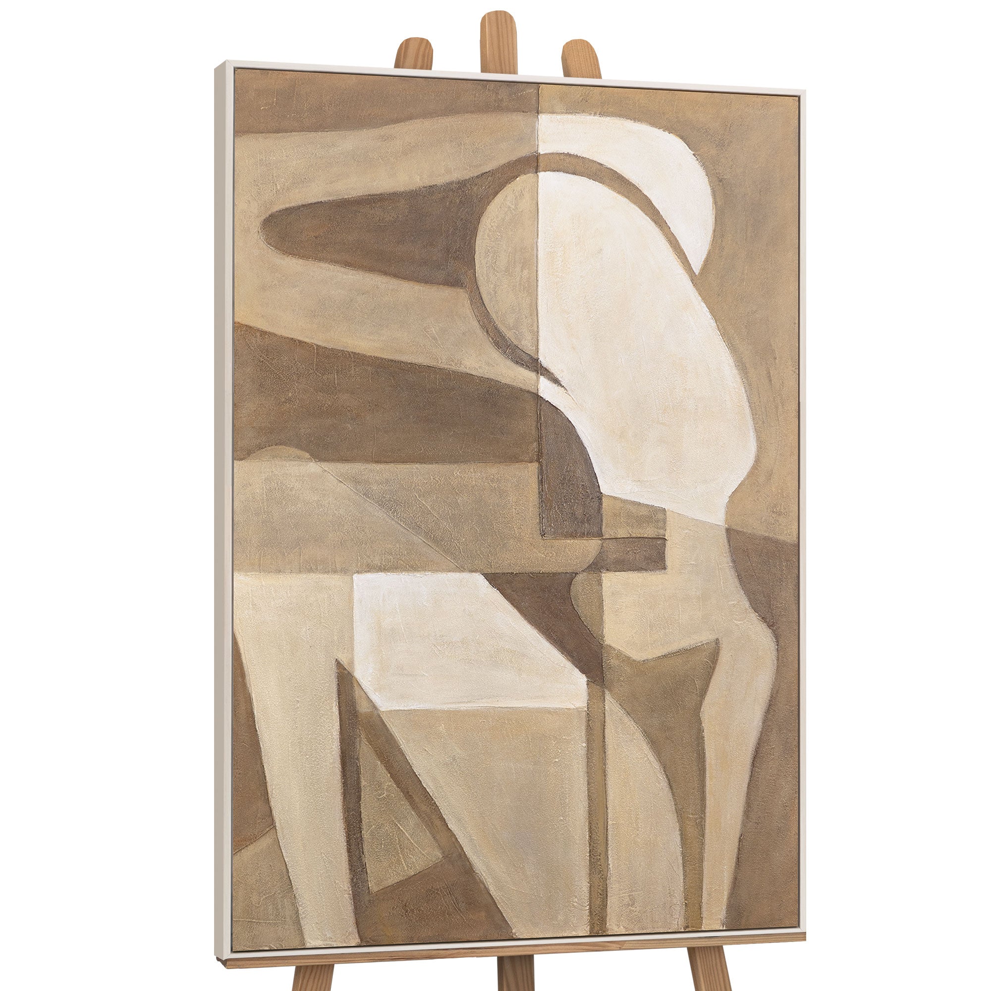 Abstrakte Zärtlichkeit“ vereint geometrische Formen und sanfte Bewegung zu einer poetischen Komposition. Die Figur erscheint reduziert, fast wie in Gedanken geformt – eingebettet in warme, harmonische Brauntöne und sanft strukturierte Oberflächen.