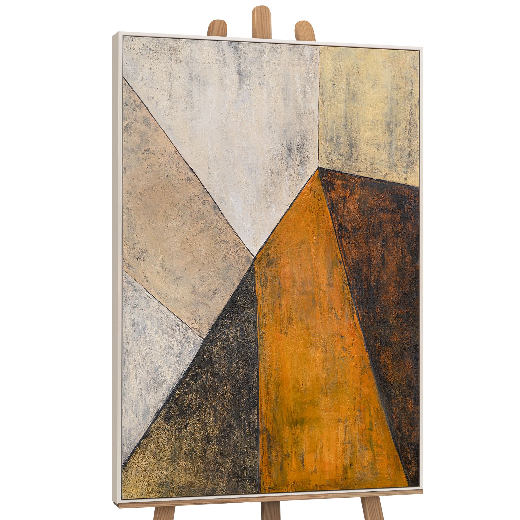 „Begegnung der Ebenen“ ist ein handgemaltes Acrylgemälde, das geometrische Flächen und sanfte Struktur in harmonische Balance bringt. Die kontrastreiche Farbpalette aus warmem Orange, gedecktem Schwarz und hellem Beige verleiht der Komposition Tiefe und Dynamik. Die strukturierte Oberfläche fängt das Licht auf subtile Weise ein und schafft ein Spiel aus Form, Farbe und Textur.