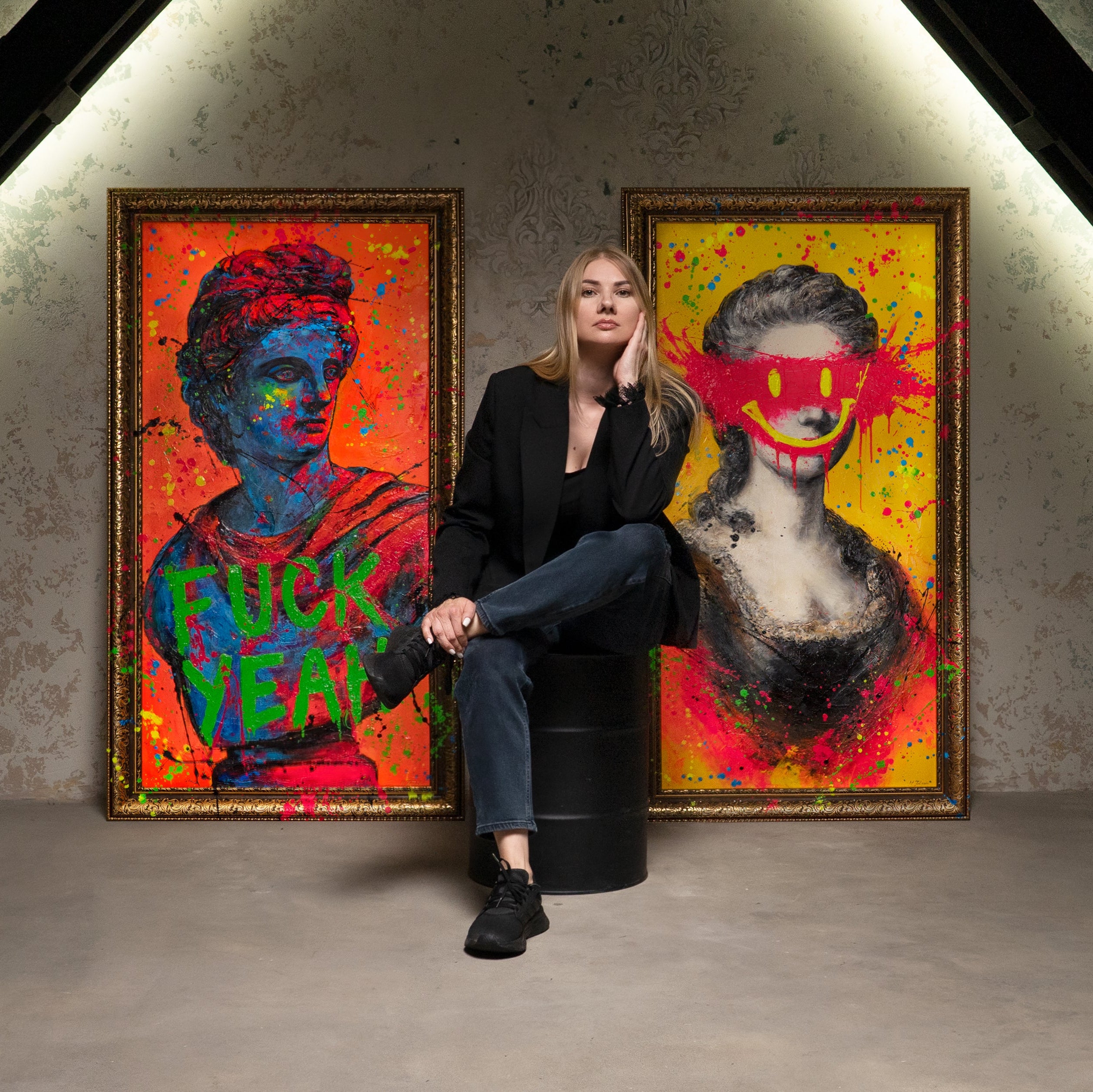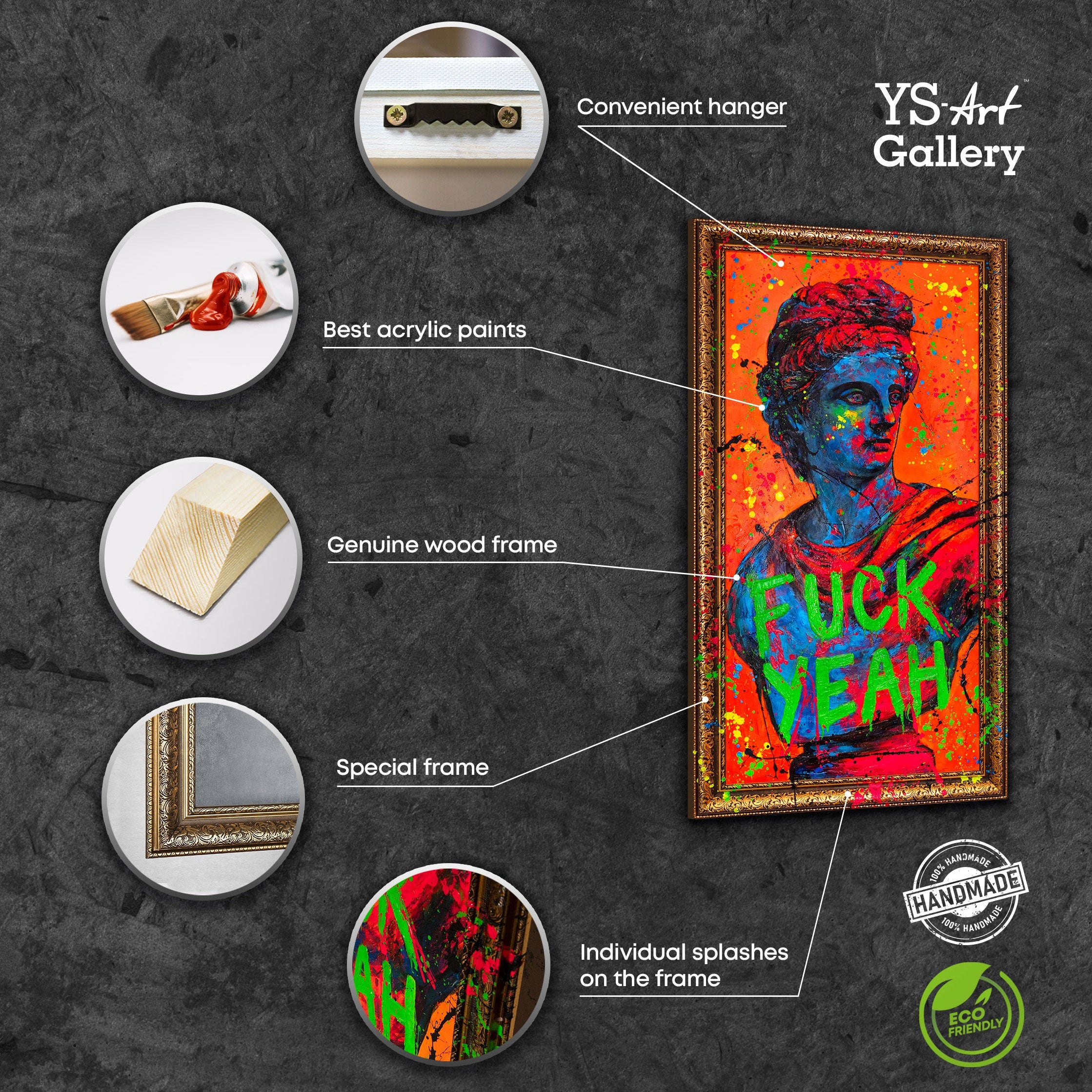 Dieses Bild ist perfekt für alle, die moderne wanddeko wohnzimmer, provokante abstrakte kunst oder exklusive gemälde kaufen online suchen. Es bringt urbanen Lifestyle, Pop-Art-Charakter und künstlerische Freiheit direkt in Ihre Räume.