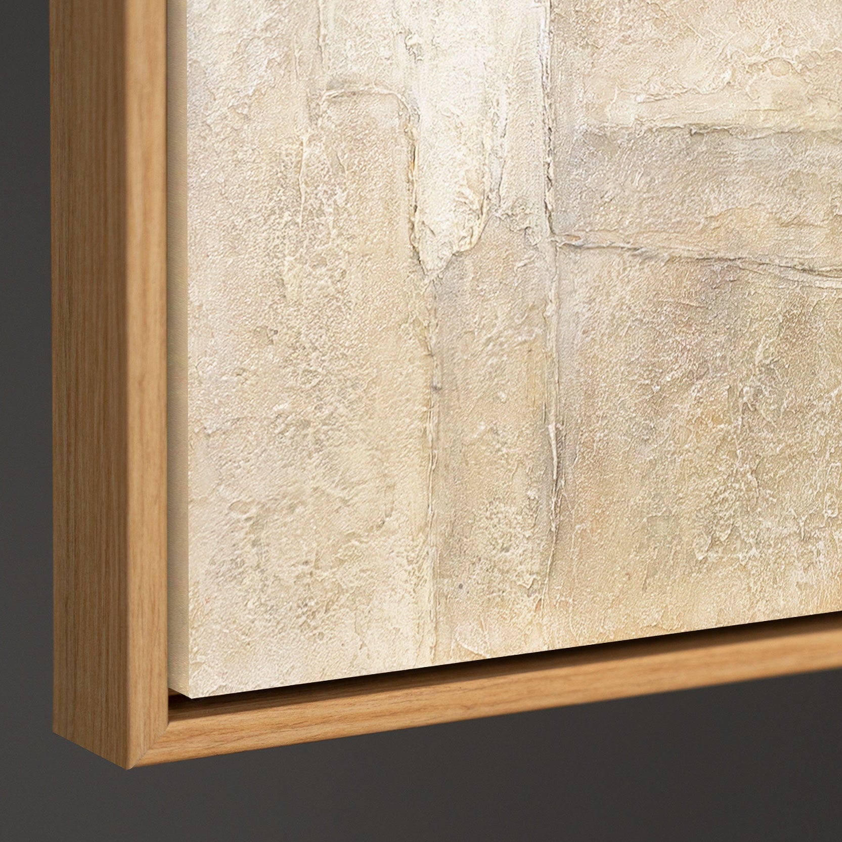 ”Ajan pystysuorat” on seesteinen, strukturoitu abstrakti maalaus, joka luo selkeän ja tasapainoisen sommitelman vaakasuuntaisten ja pystysuuntaisten kerrosten avulla. Beigen, harmaan ja lämpimien luonnon sävyjen lempeät siirtymät muistuttavat geologisia muodostumia ja antavat akryylimaalaukselle hiljaisen syvyyden. Hienovarainen pinta korostaa teoksen käsinmaalattua luonnetta.